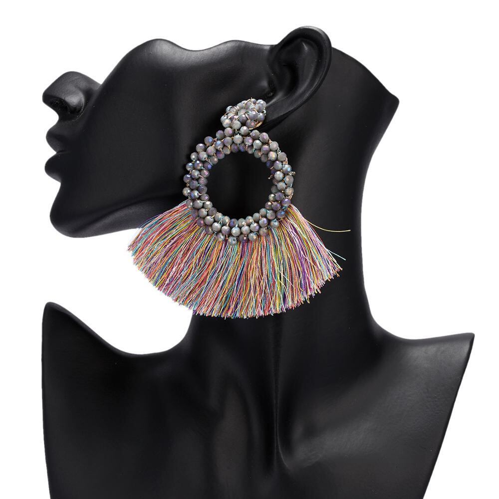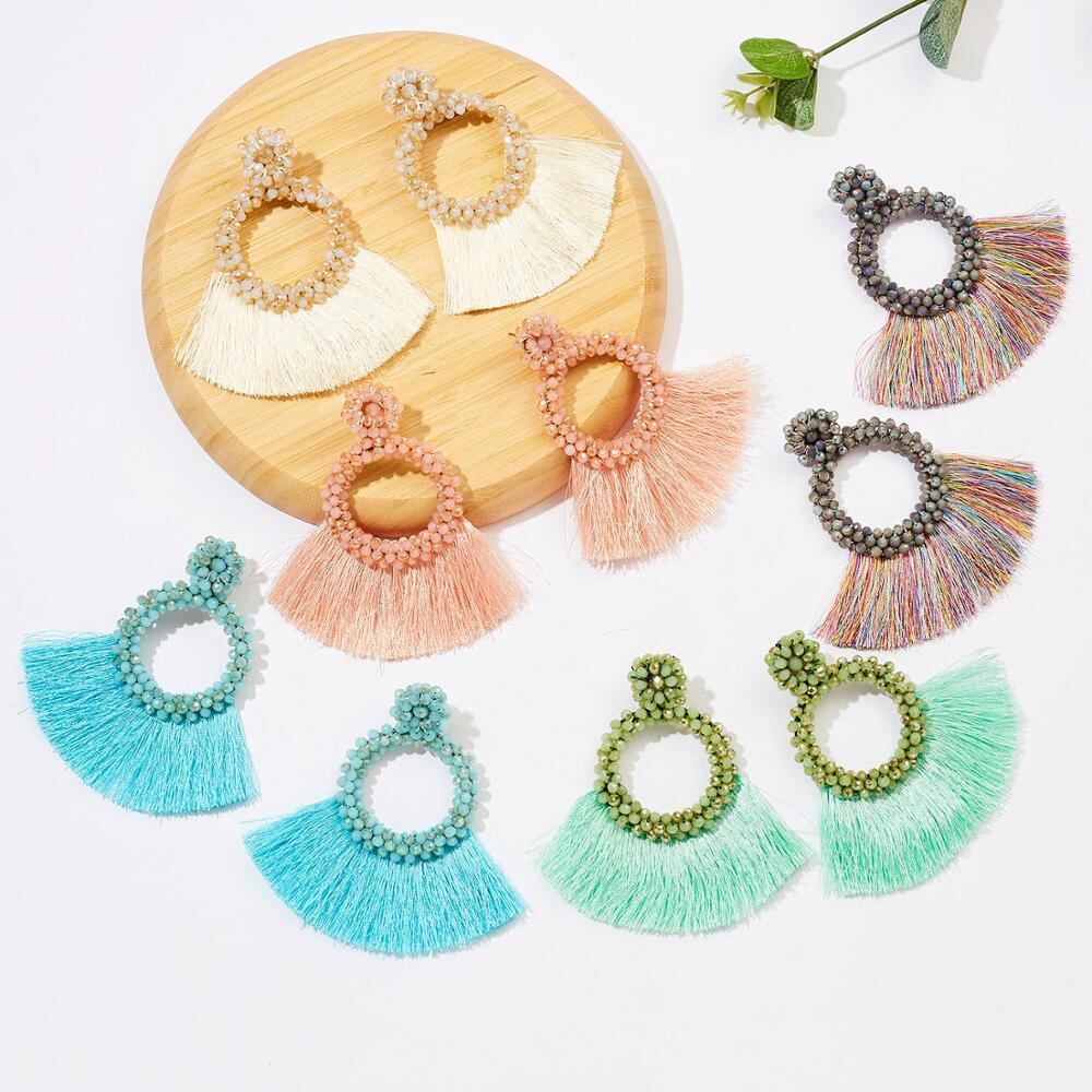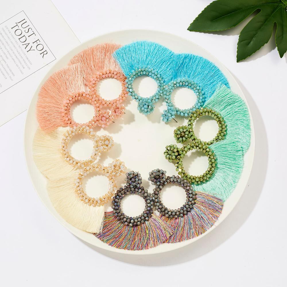 送料無料 カラフルなクリスタルTelイヤリングチャームイヤリング幾何学的なサークルラウンド手作りフリンジイヤリングボヘミアンジュエリーウェディングブライダル 指輪 アクセサリー AE1332221651202324840