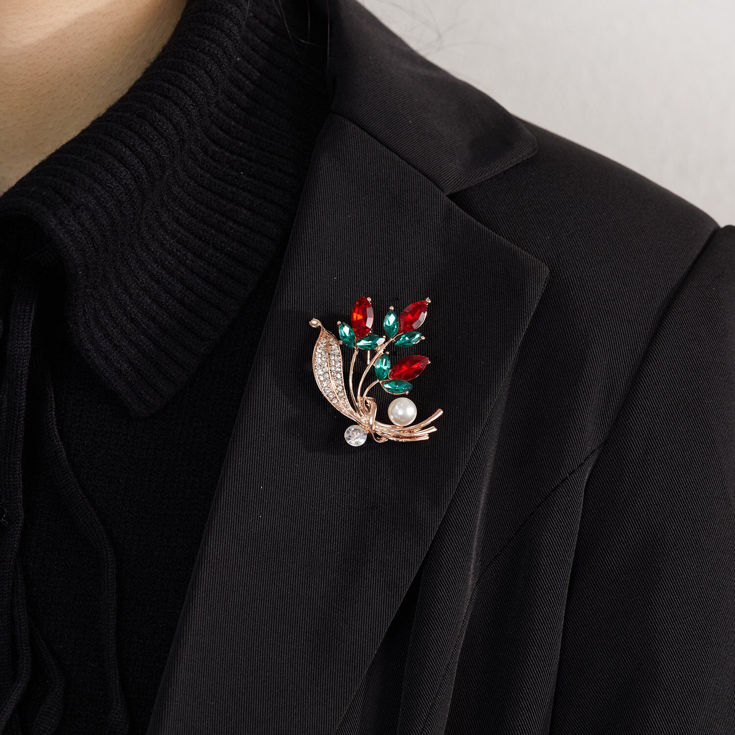送料無料 チャームレッドローズフラワーブローチ女性美しい小麦ジルコンブローチ-ピンフレンドホリデーギフトレトロジュエリー フラワーデザイン アクセサリー AE1332221664843104897