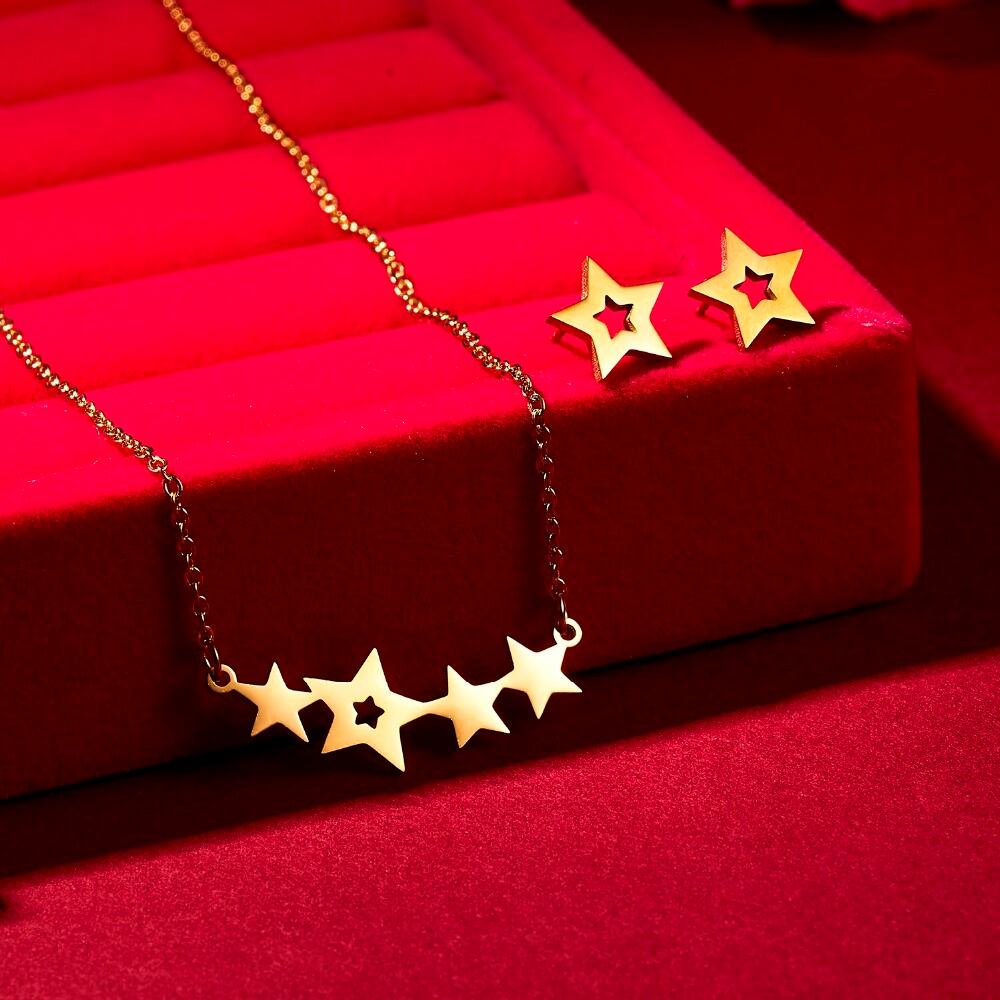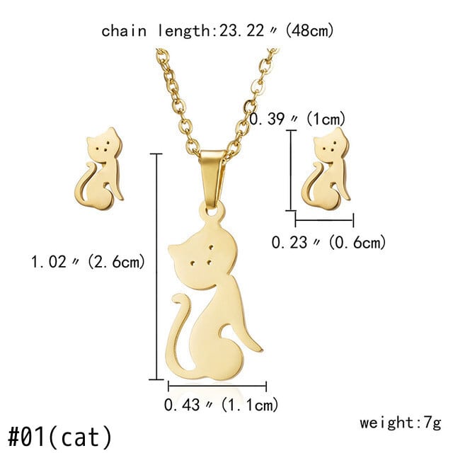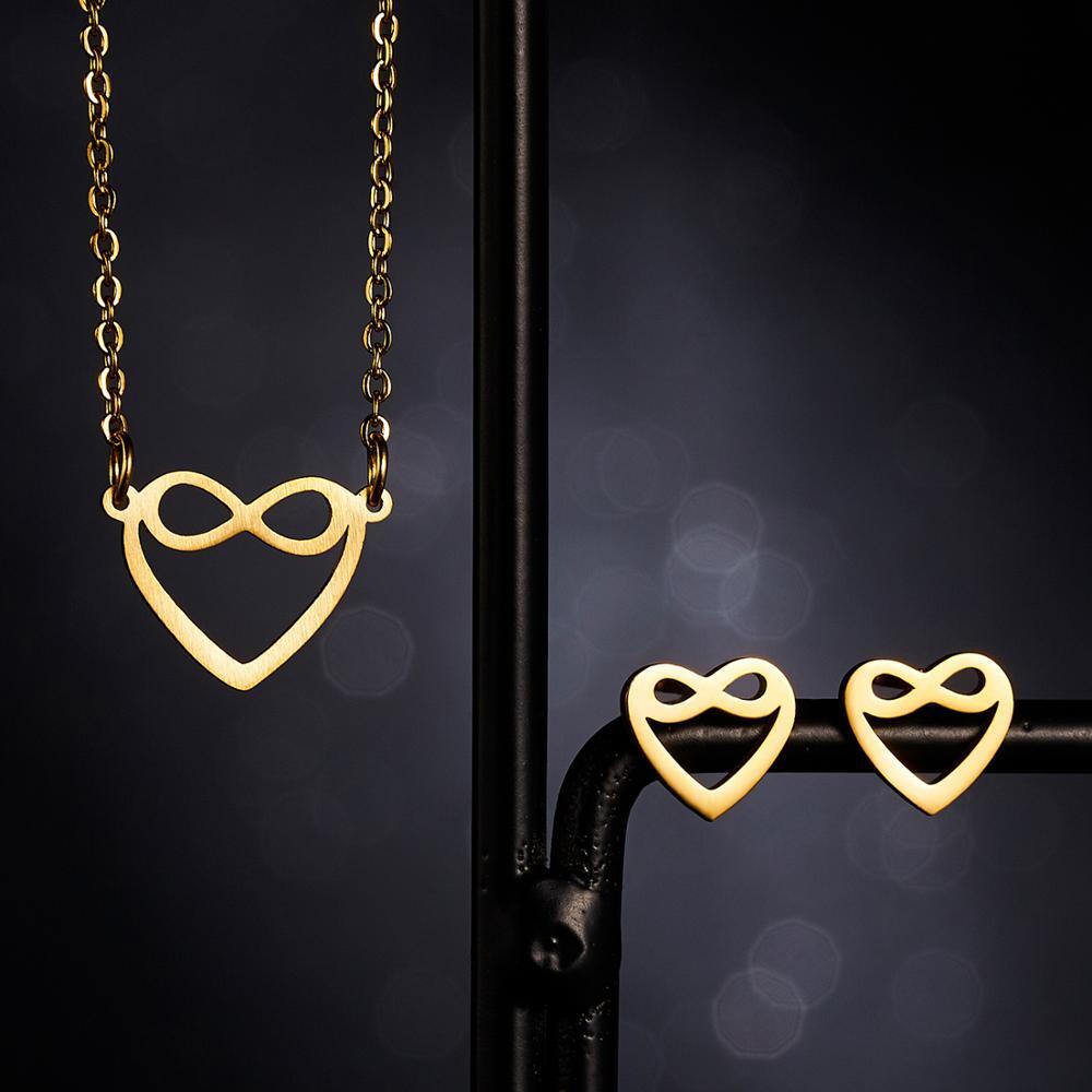 送料無料 1セットゴールドステンレススチールホロースターバタフライハートインフィニット"8"キャットペンダントリンクチェーンネックレスとスタッドピアスジュエリーセット レース イヤリング アクセサリー AE1332221651172082885