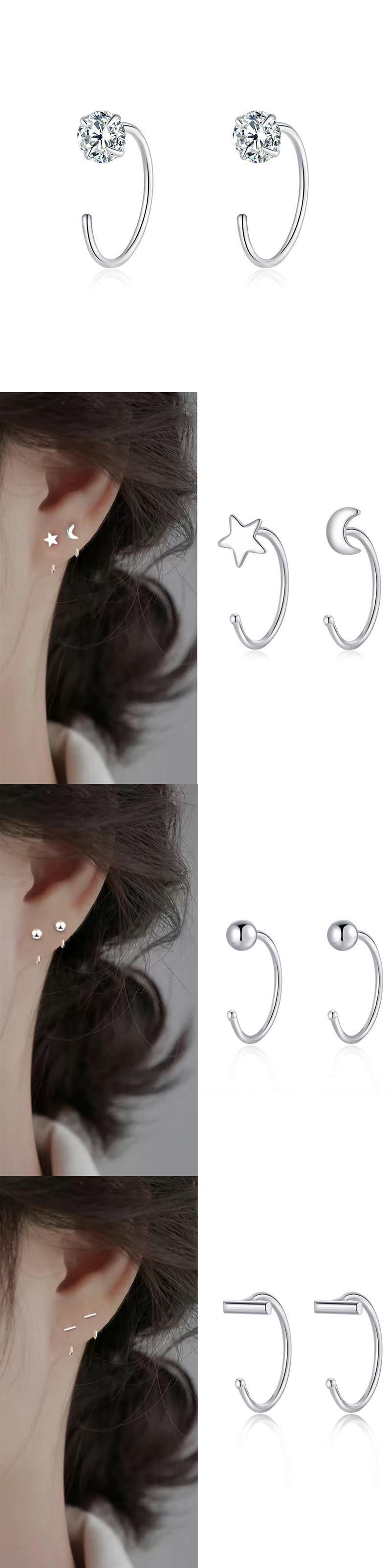 送料無料 絶妙なバタフライイヤリング女性シルバーカラースモールオープンフープピアスピアスシンプルな幾何学的非対称スタッドジュエリー 指輪 銀 アクセサリー AE1332221616846071496