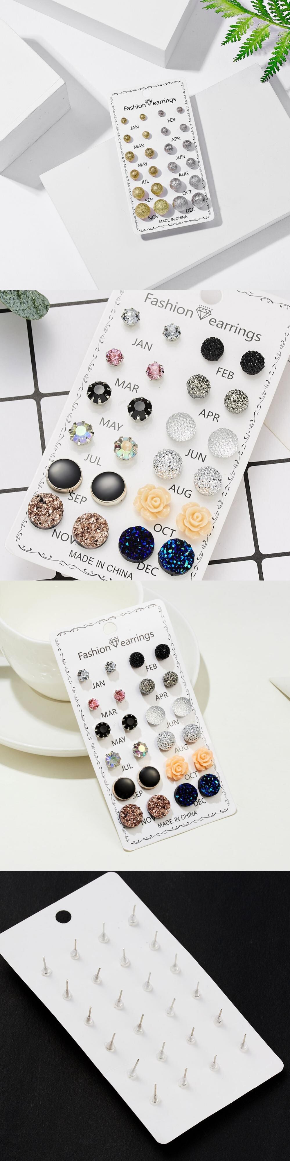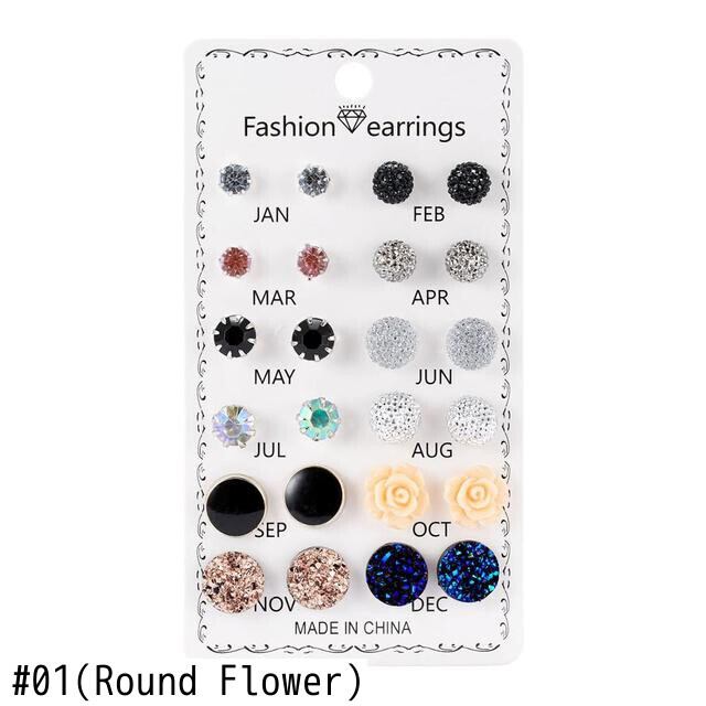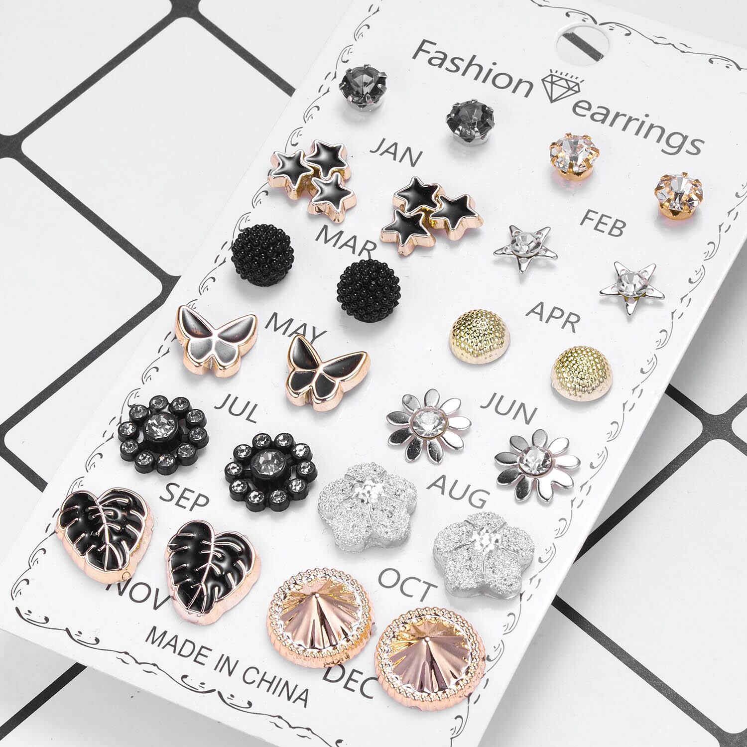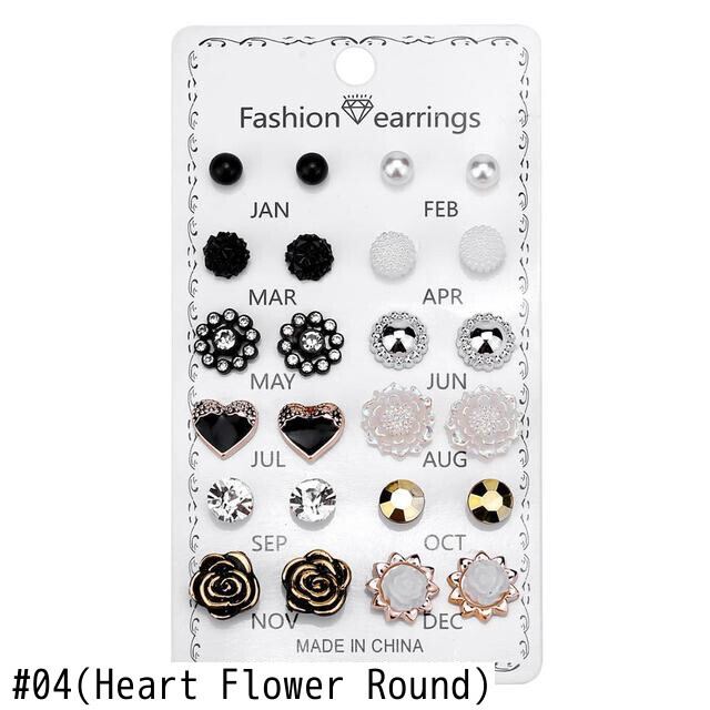 送料無料 12ペア/セットバタフライハートフラワーシェイプクリスタルピアスボールスタッドピアスキットブリンコスチャームジュエリーギフト イヤリング フラワーデザイン アクセサリー AE1332221615216580752