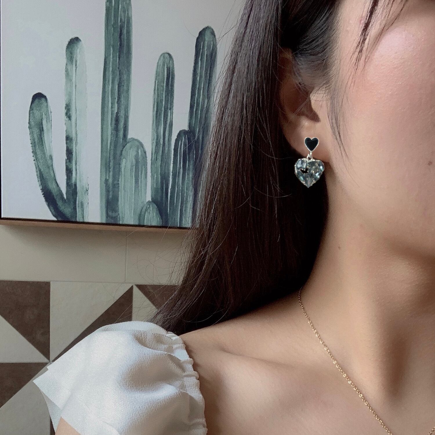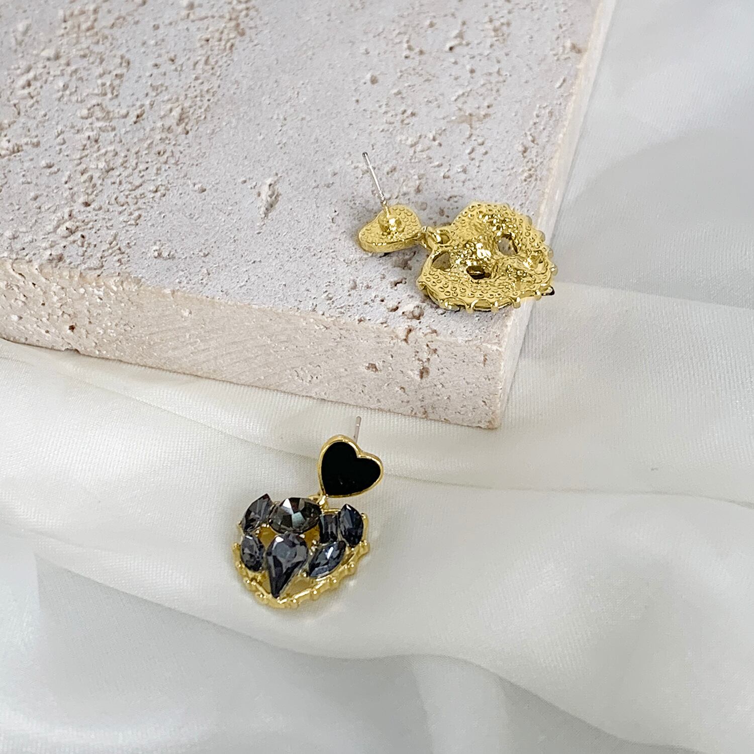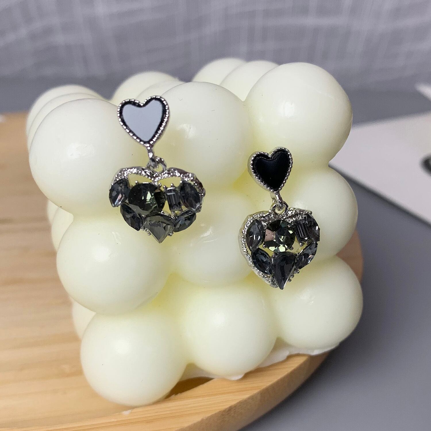 送料無料 ヴィンテージダブルハートシェイプかわいいイヤリング2022ブラックラインストーン気質イヤリング女性ジュエリーギフトWholesa 大人ガーリー スウィート キュート カジュアル 指輪 ビンテージ アクセサリー AE133222162885065060