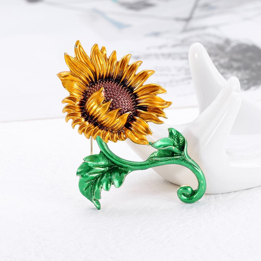 送料無料 ひまわりペイントブローチ繊細な黄紫女性女の子襟章服アクセサリーギフトジュエリーリース フラワーデザイン パープル アクセサリー AE1332221670137920508
