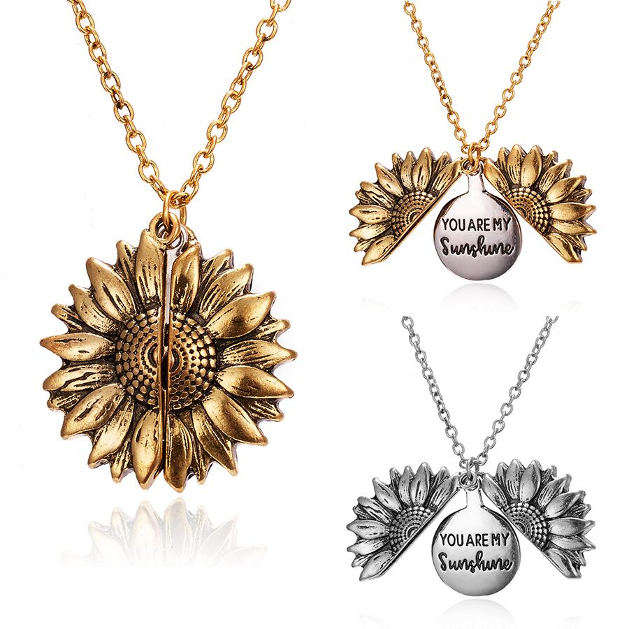 送料無料 2021年ヴィンタグテ女性ゴールドネックレス刻印文字あなたは私のサンシャインオープンロケットひまわりペンダントネックレス誕生日プレゼント レース フラワーデザイン アクセサリー AE1332221664486803246