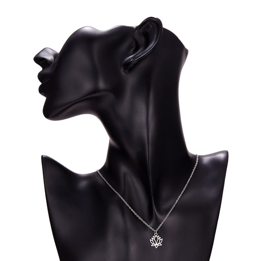 送料無料 リンフーシルバーカラーステンレススチールフラワーロータスシェイプペンダントネックレスヨガチャクラネックレスレディースジュエリーギフト レース フラワーデザイン 銀 アクセサリー AE1332221630892781714