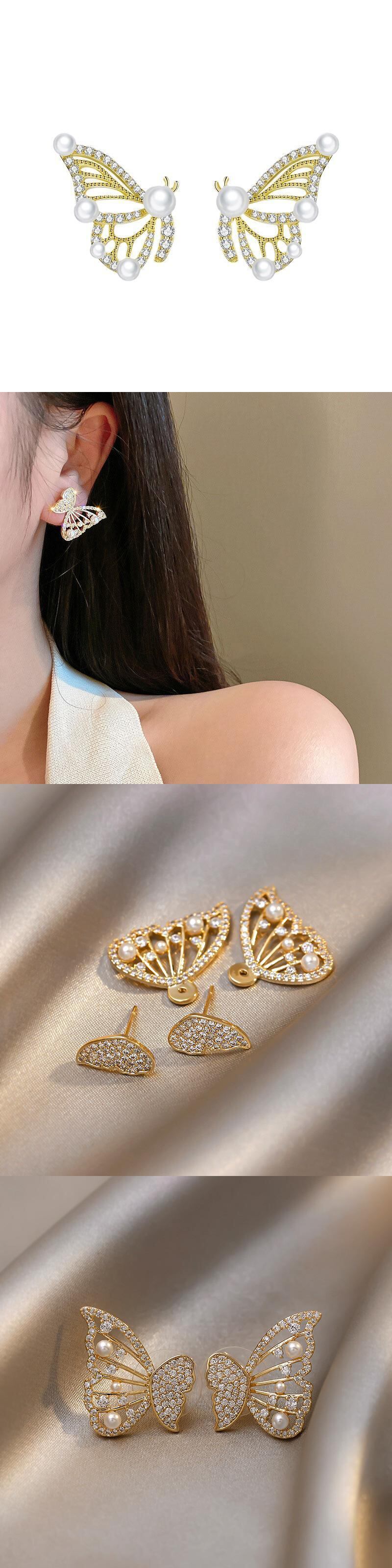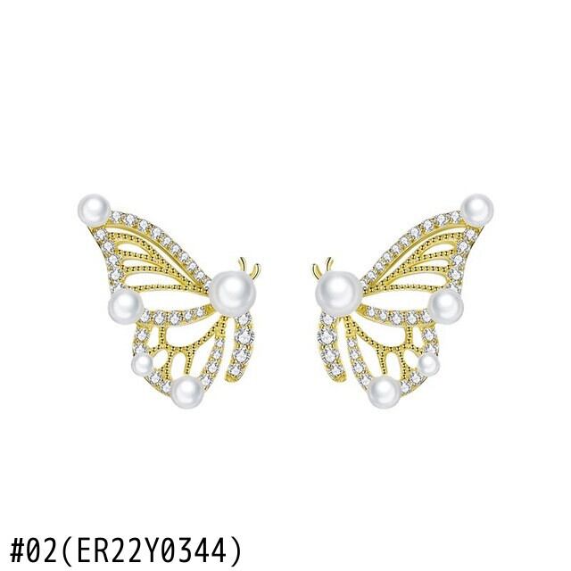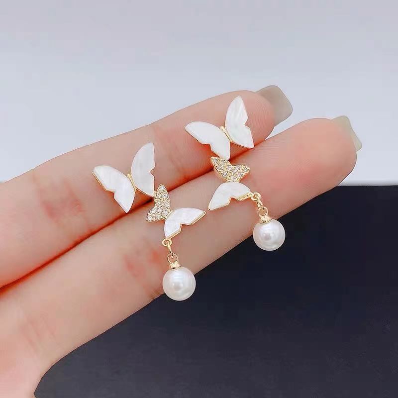 送料無料 20222つのバタフライパールペンダントイヤリング女性が輝くジルコン妖精の気質甘いイヤリングジュエリーギフト 大人ガーリー スウィート キュート カジュアル 真珠 指輪 アクセサリー AE1332221615306544779