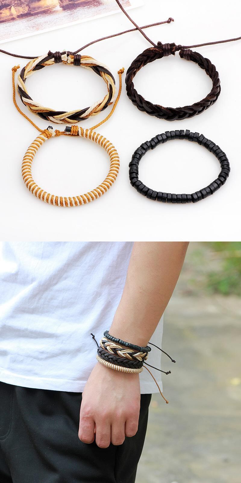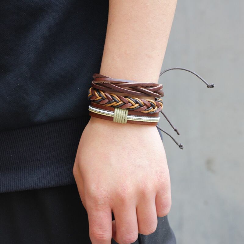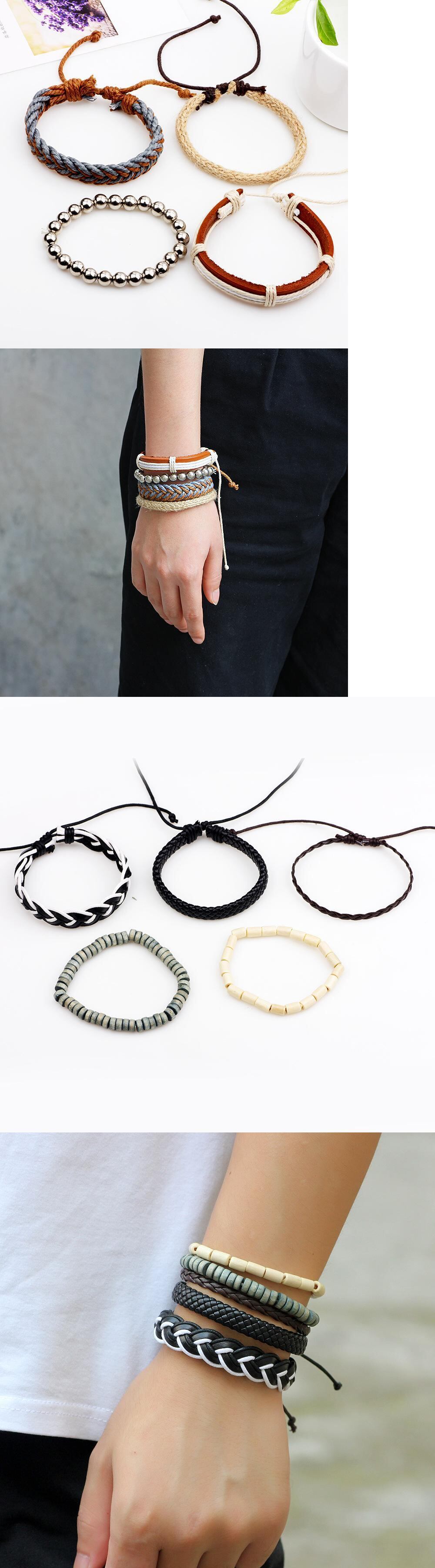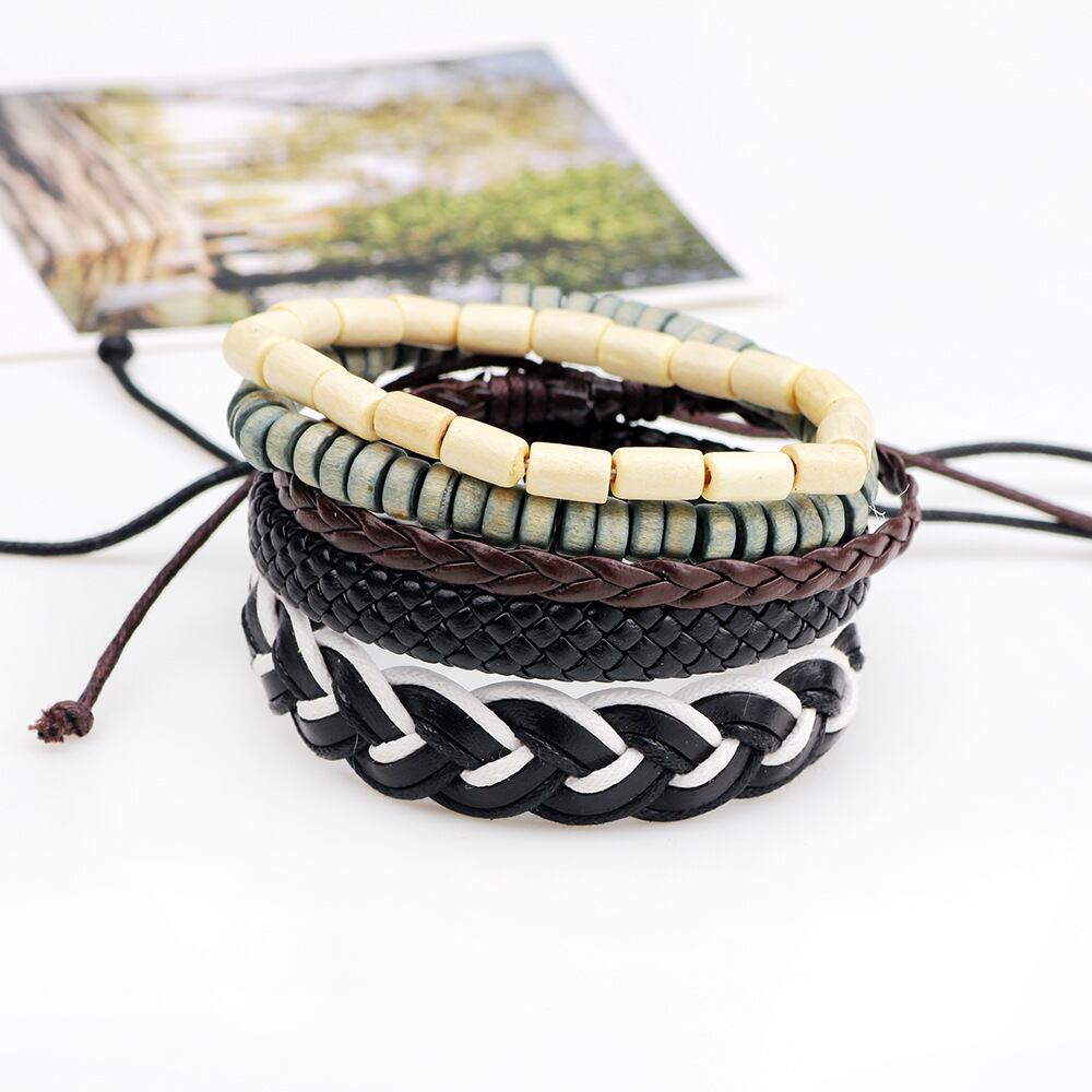 送料無料 RinhooヴィンテージマルチレイヤーレザーブレスレットセットメンズレディースチャームストーンウッドメタルビーズビーズラップブレスレットPulseras ビンテージ アクセサリー AE133222168970945993