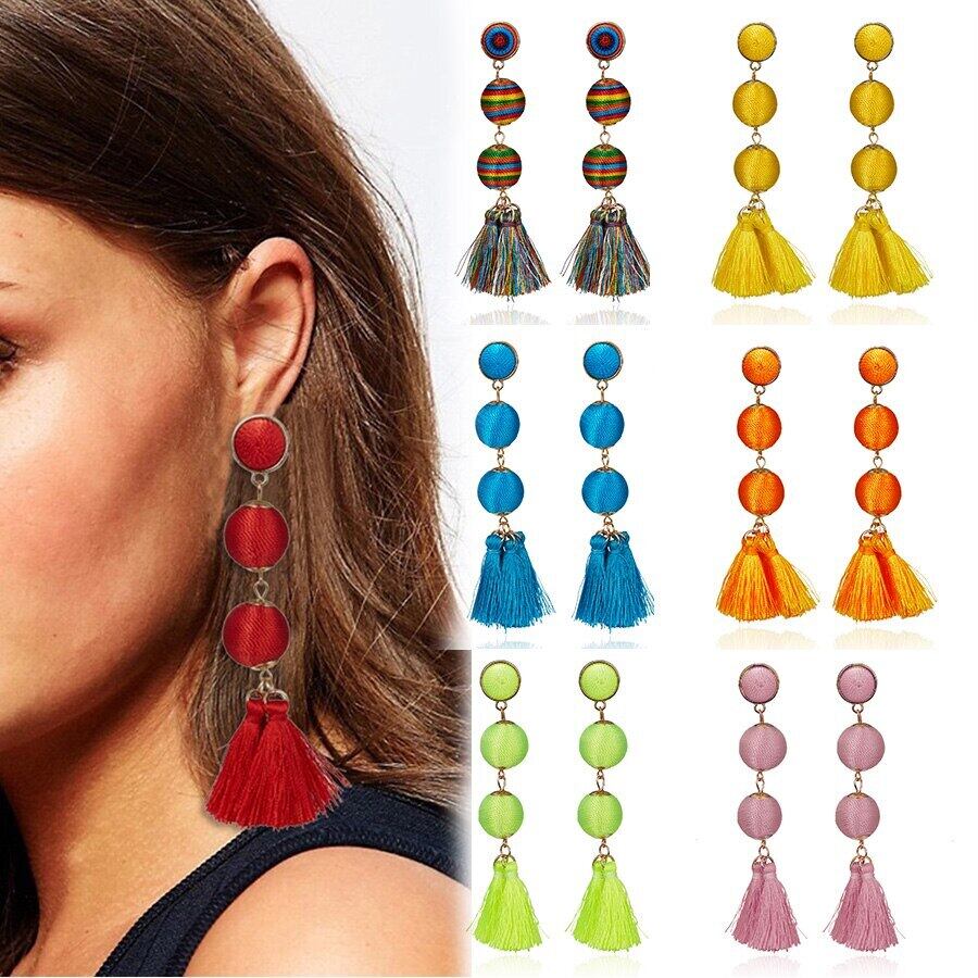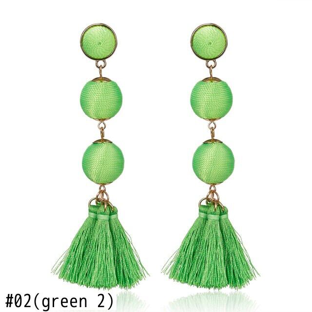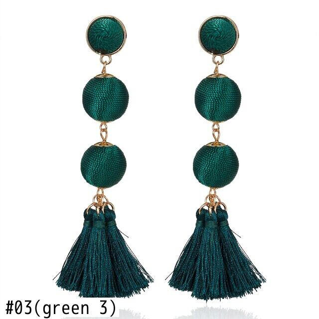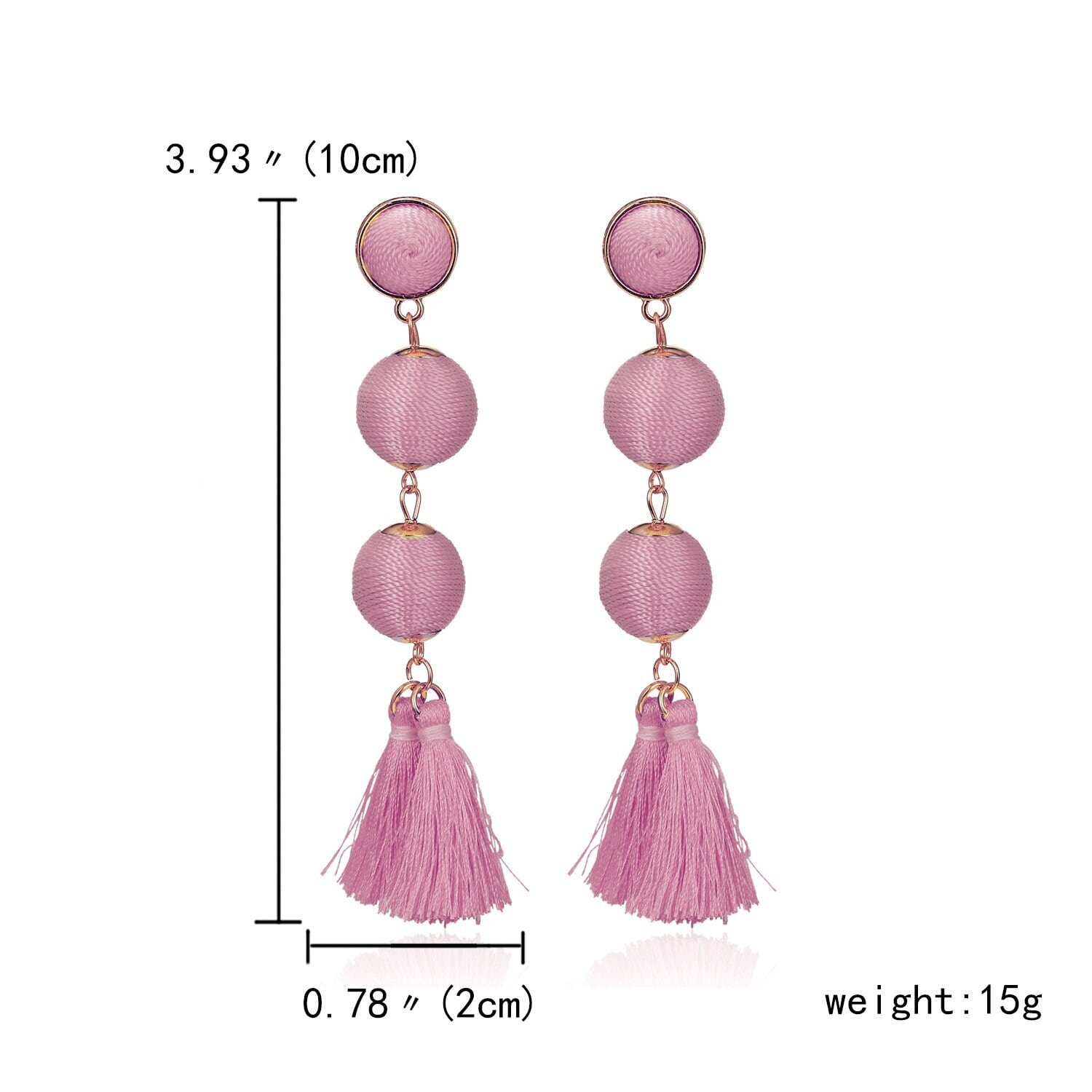 送料無料 ボヘミアンテルロングイヤリング女性14色コットンシルクボール生地フリンジイヤリング手作り女性自由奔放に生きるジュエリー 指輪 アクセサリー AE1332221674290535677