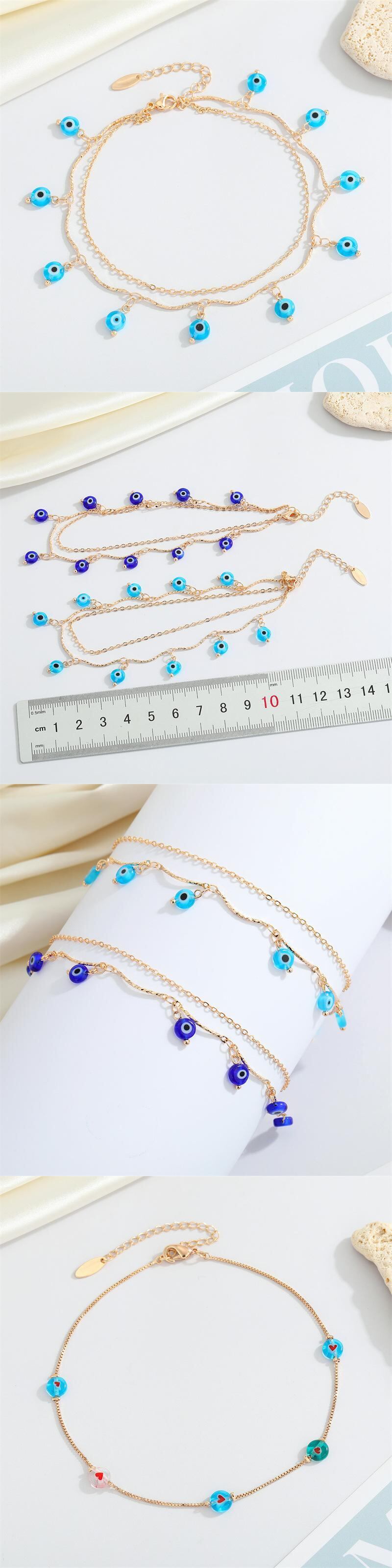 送料無料 ブルーイービルアイペンダントアンクレット女性多層ヴィンテージレジンビーズチェーン足首調節可能なジュエリーギフト夏 サマー 夏物 アジャスタブル ビンテージ アクセサリー AE1332221621537997076