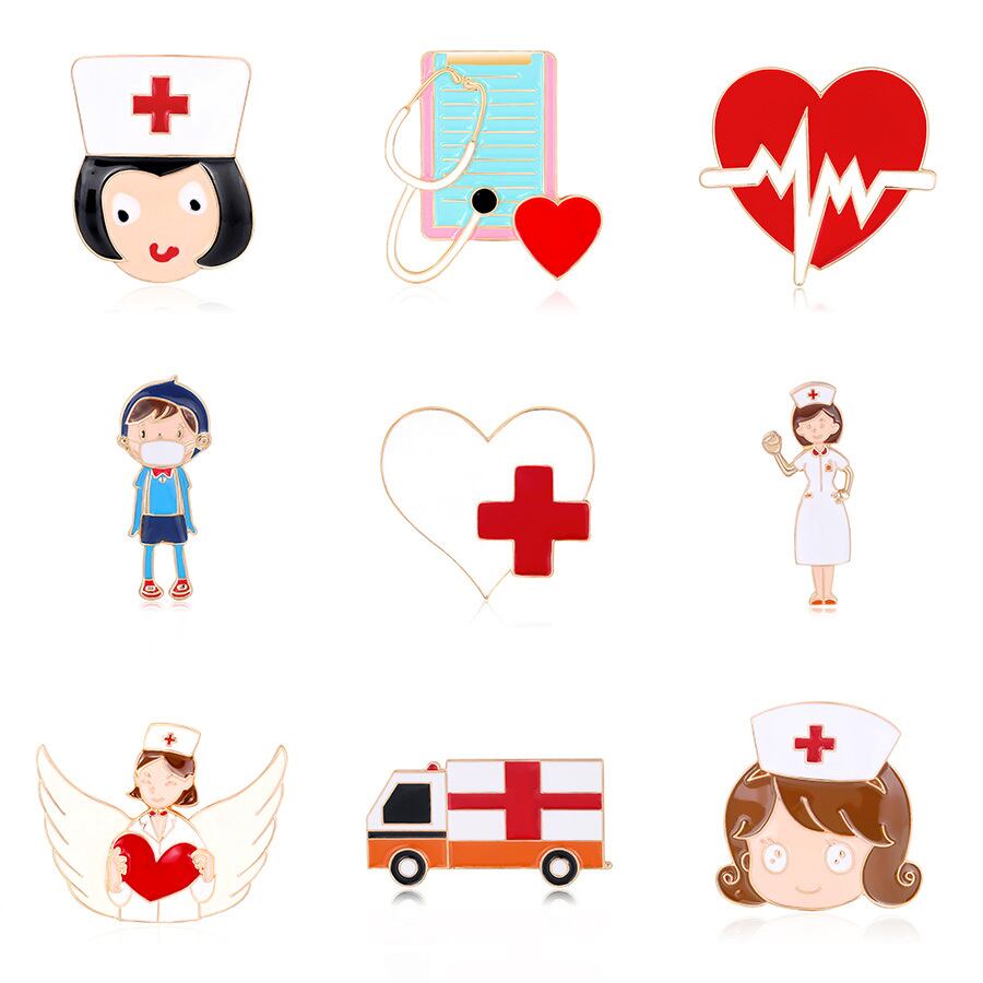 送料無料 1PCカラフルハートクロスエンジェルナース心電図救急車合金エナメルブローチアクセサリー洋服バッグ アクセサリー AE1332221641949454910