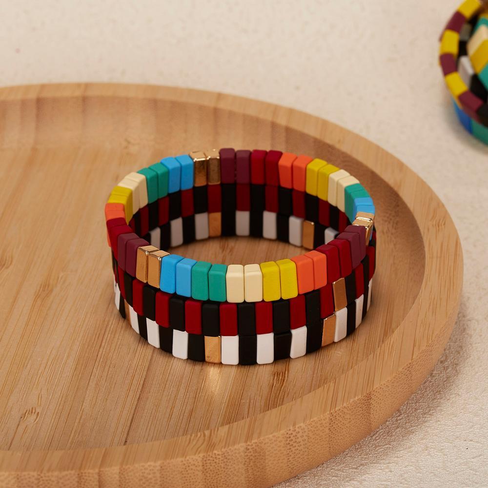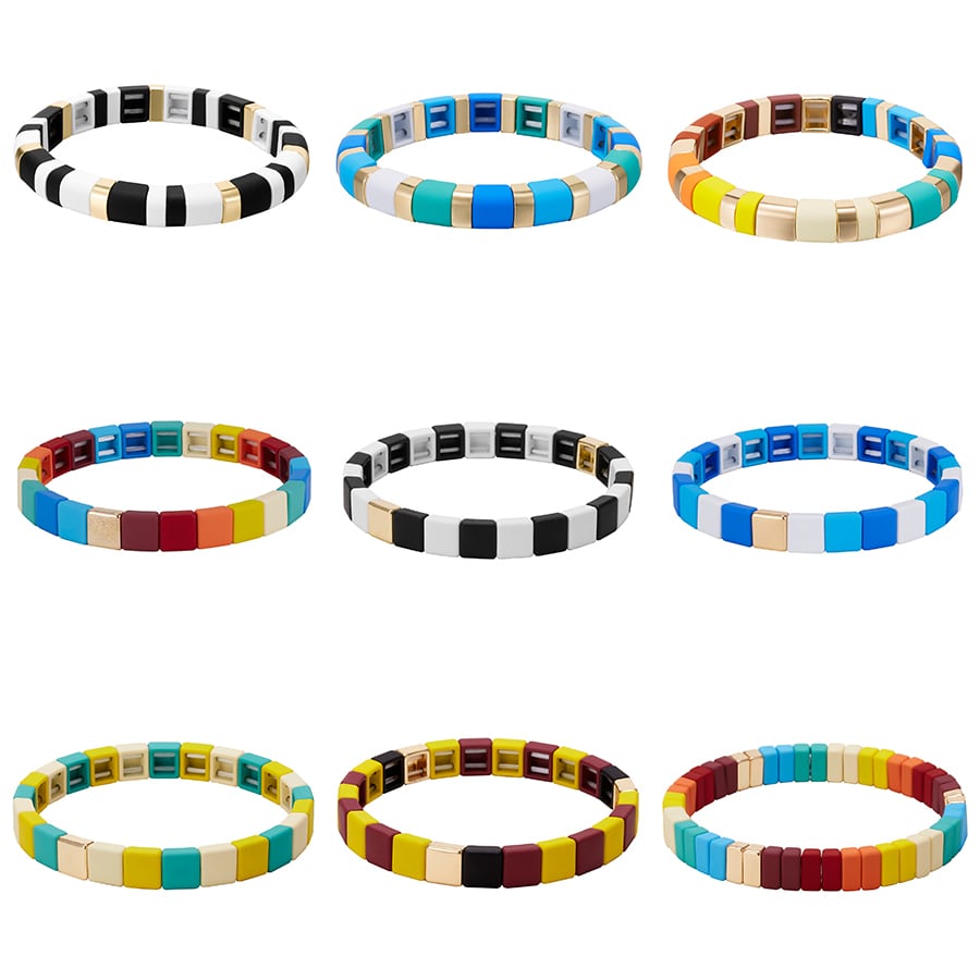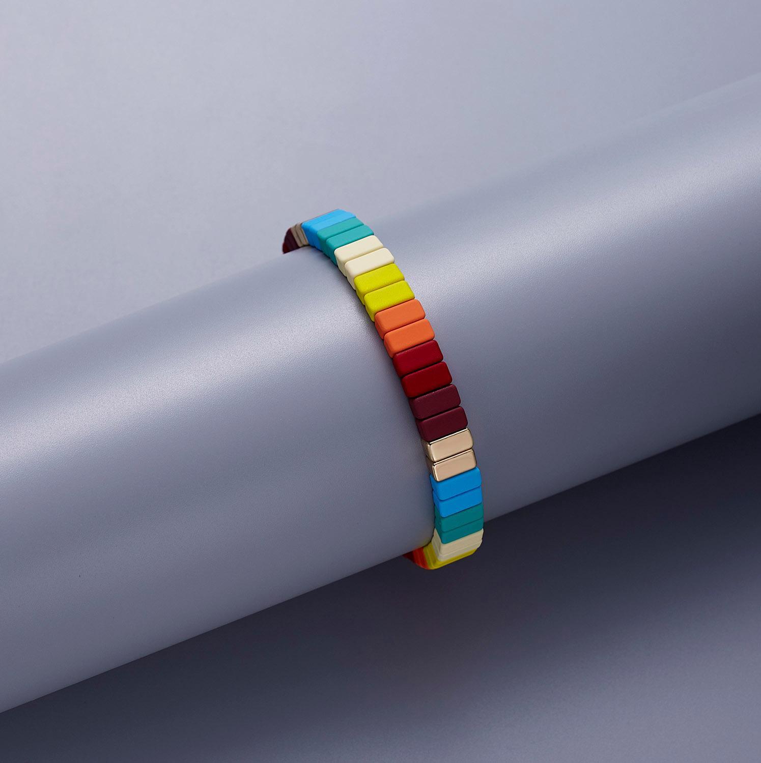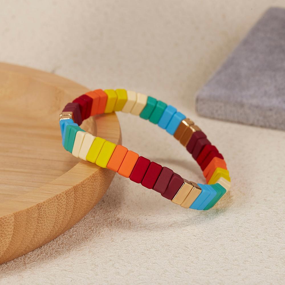 送料無料 Rinhoo2021幾何学的形状レインボーミックスカラー合金ビーズ弾性ロープチェーンフレンドシップブレスレットチャームジュエリーギフト エラスティック 伸縮 アクセサリー AE1332221677937754873