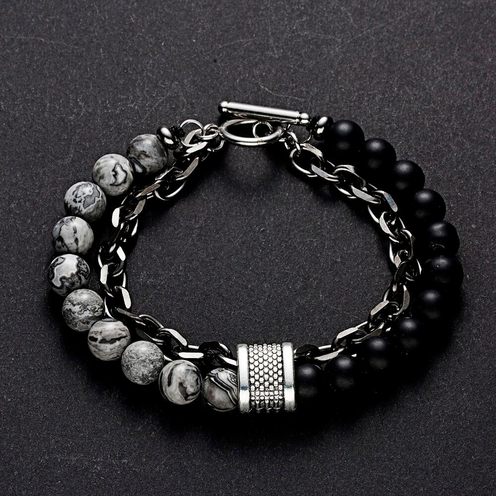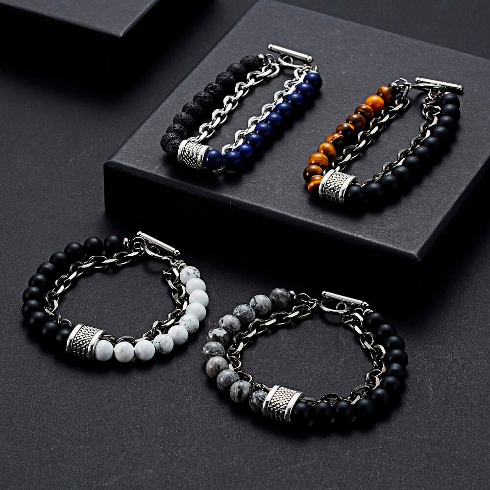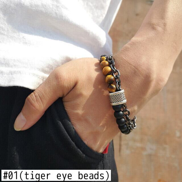 送料無料 22cmメンズブレスレットクールナチュラルタイガーアイベッドブレスレットステンレススチールキューバリンクダブルレイヤーリストバンドバングル男性用ジュエリー 天然 アクセサリー AE133222169619281429