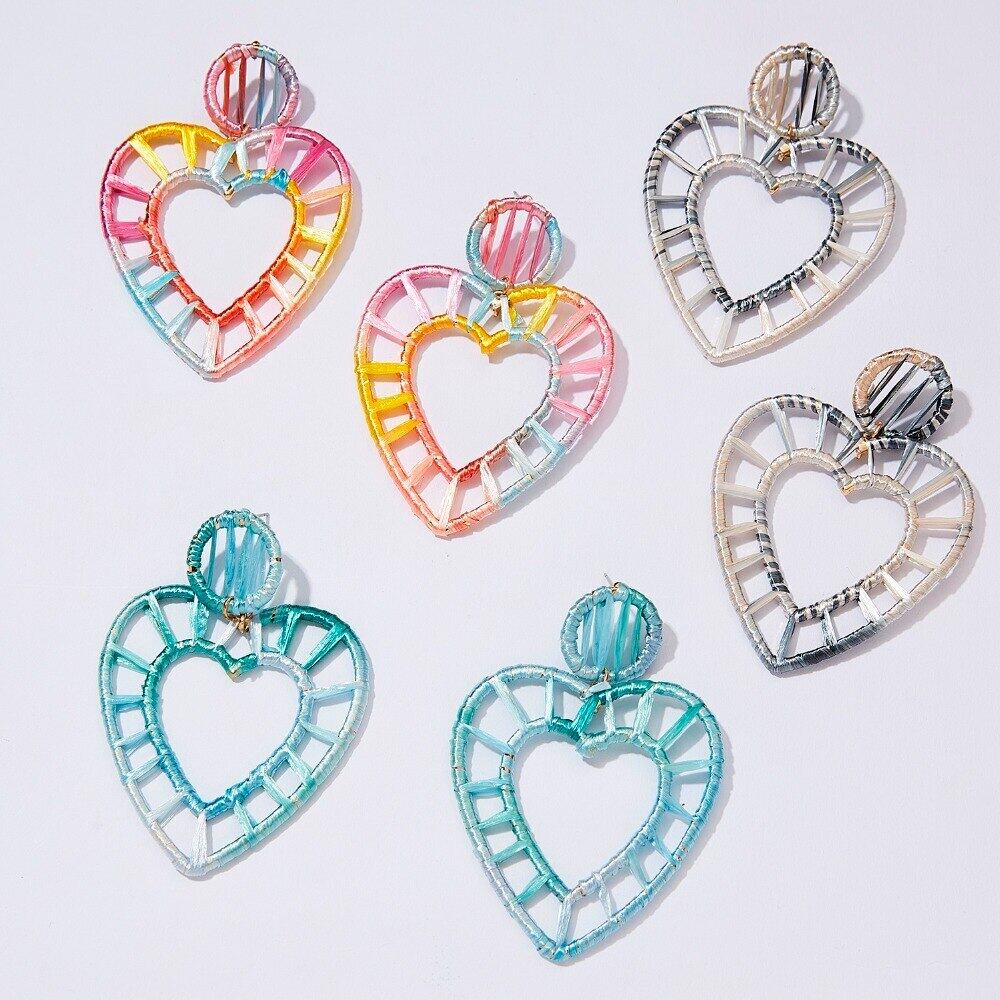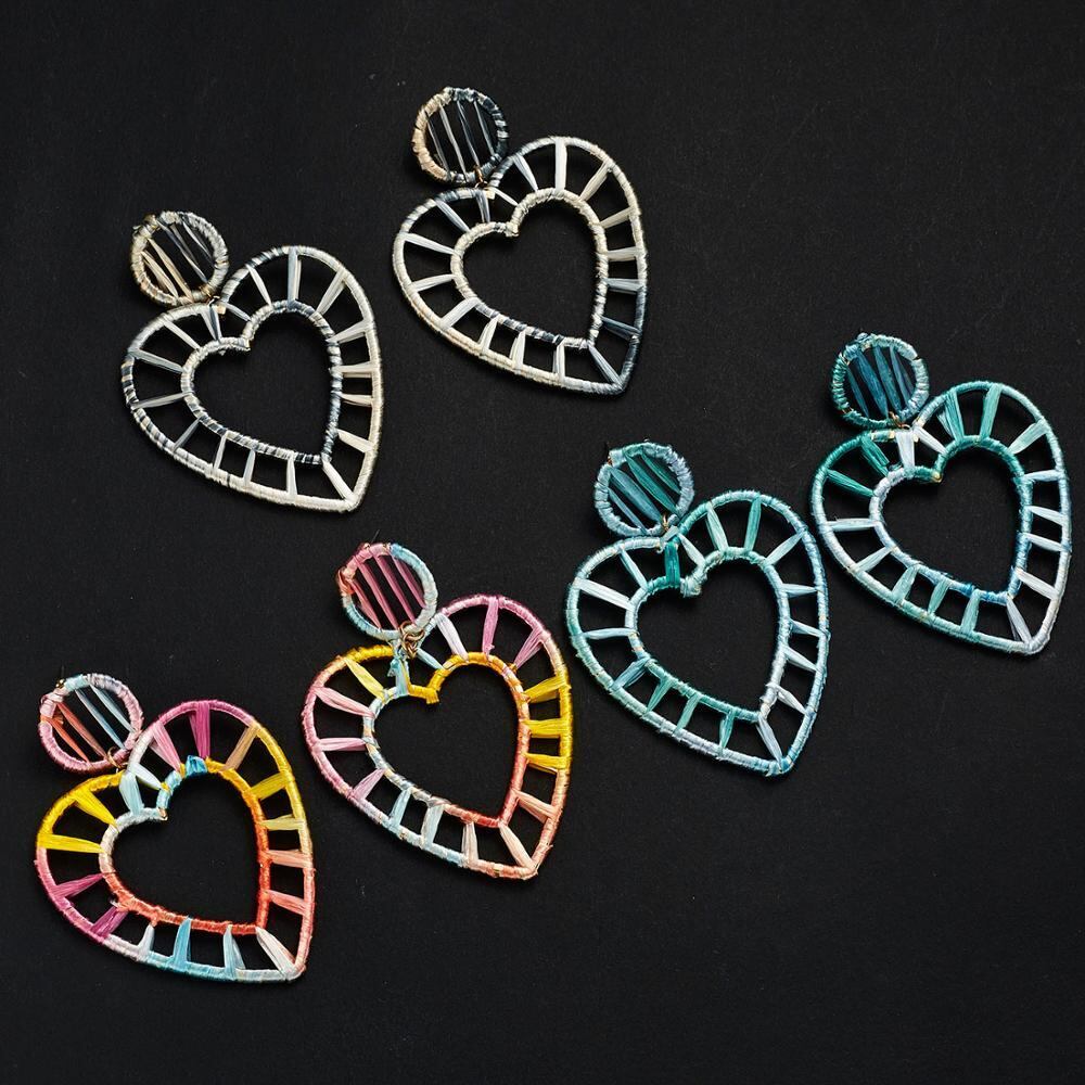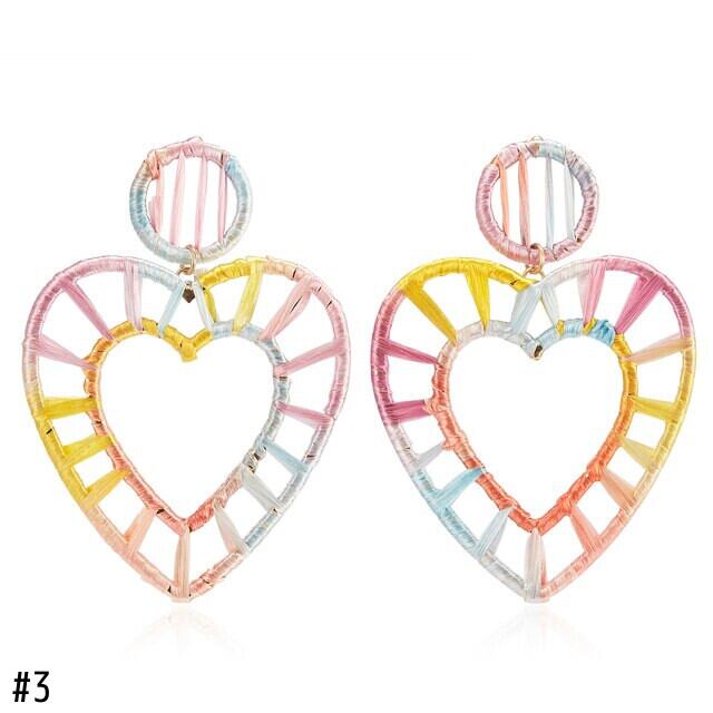 送料無料 ホットジュエリーレインボーカラフルラフィアイヤリングビッグホロウハートストローステートメントイヤリング女性ボヘミアンジュエリービジュー 指輪 アクセサリー AE1332221627782695660