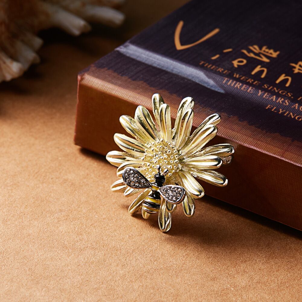 送料無料 RINHOOラインストーンクリスタルブローチピンデイジーフラワーヒマワリハニービー昆虫ウェディングパーティーブローチピンレディースジュエリー フラワーデザイン アクセサリー AE1332221625110704176