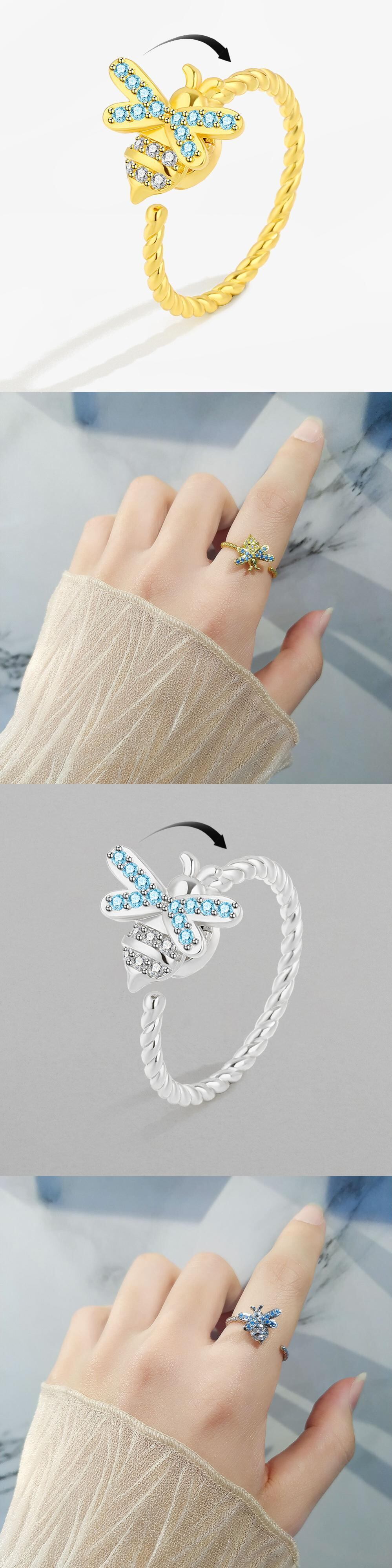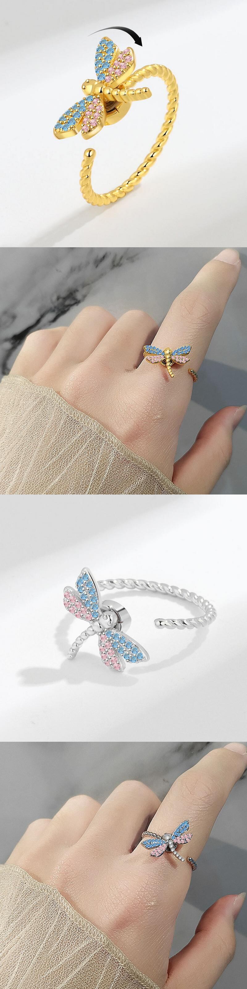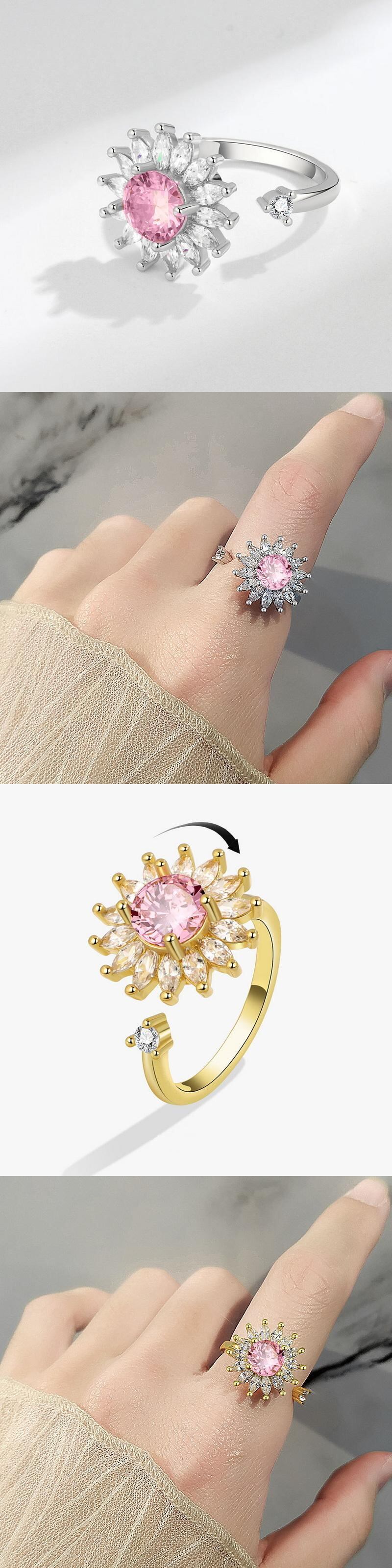 送料無料 2022年不安指輪女性回転シャインジルコンバタフライデイジーアンチストレススピナーリング調節可能なジュエリーアクセサリー アジャスタブル アクセサリー AE1332221684959709430