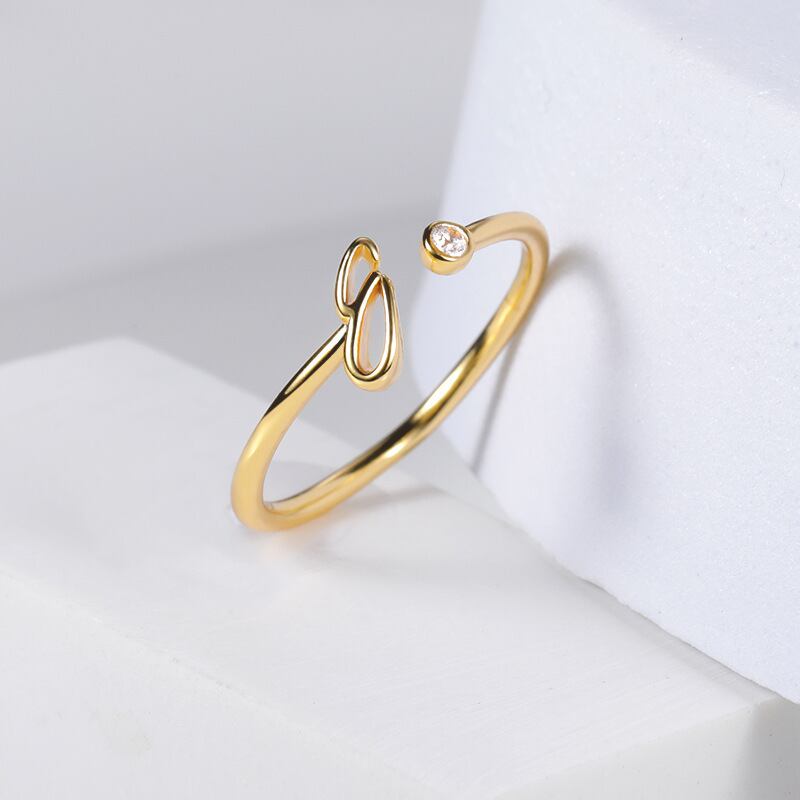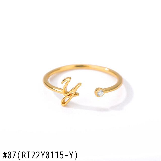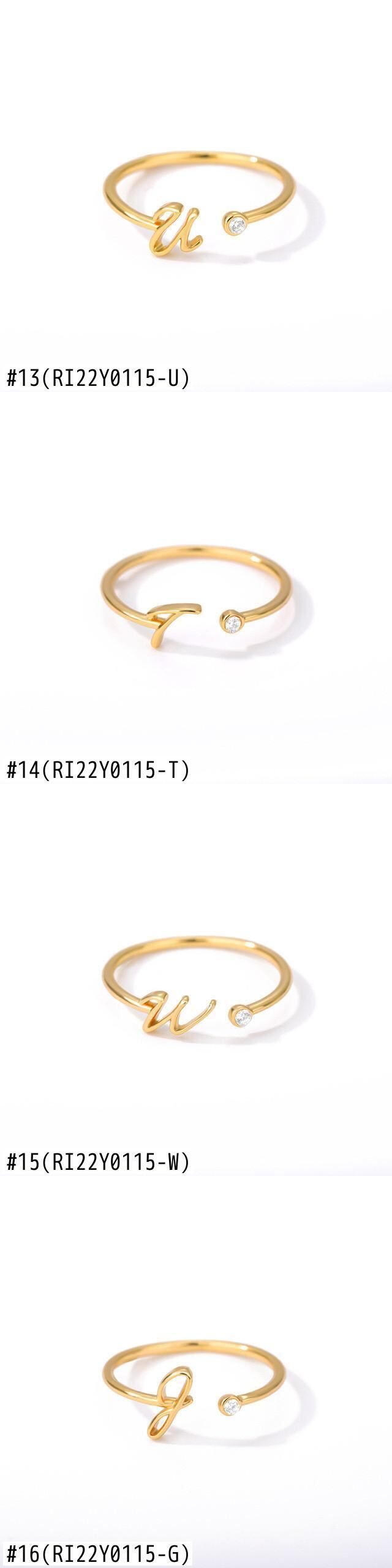 送料無料 A-Zレターゴールドカラーメタルアジャスタブルオープニングリングレディースイニシャルネームアルファベットシンプルジルコンリングトレンディなパーティージュエリー 指輪 アクセサリー AE1332221626096819788