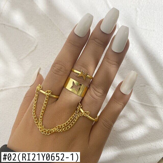 送料無料 ゴスパンクバタフライリングセット女性男性中空チェーンリンク調節可能なリングラインストーンウェディングパーティージュエリーギフト アジャスタブル 指輪 アクセサリー AE1332221610613078065
