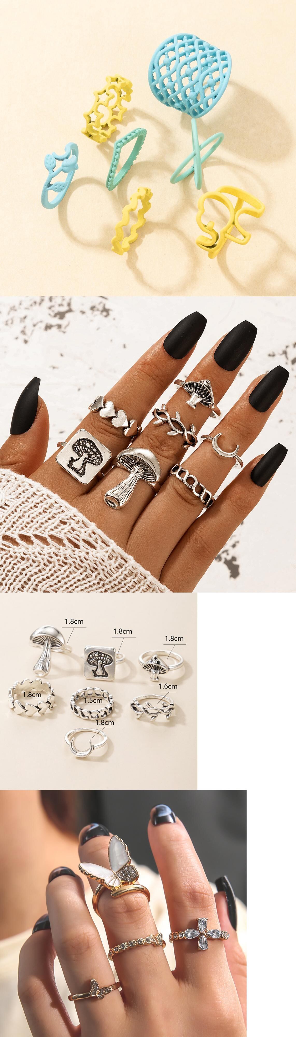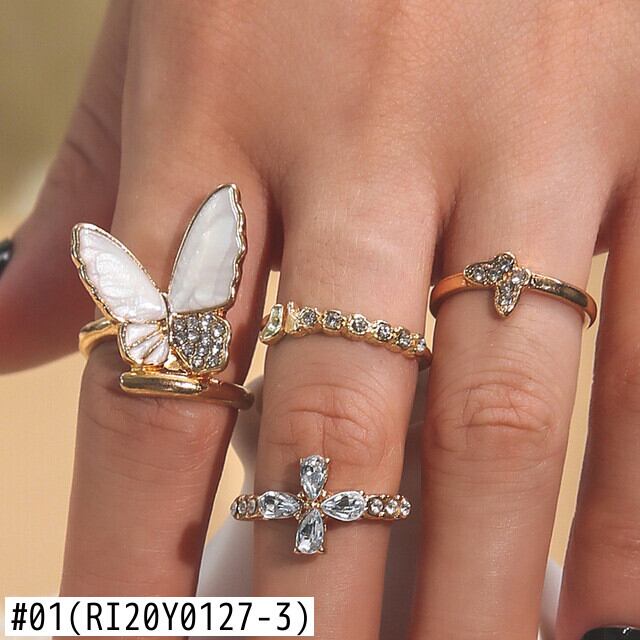 送料無料 2021年ヴィンテージボヘミアンリングセットエレファントバタフライゴールドシルバーカラーリングクリスタル幾何学リング女性ジュエリーギフト 指輪 銀 ビンテージ アクセサリー AE1332221674869338726