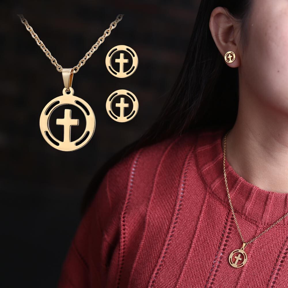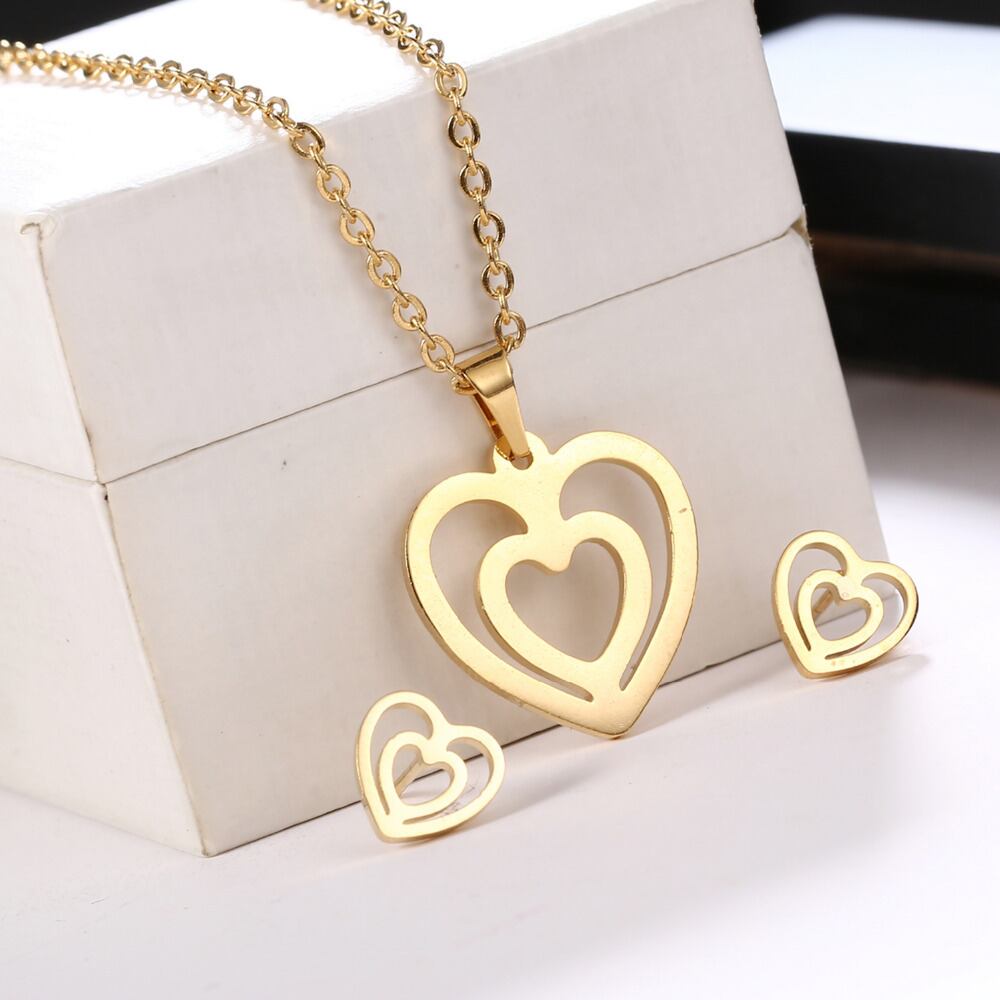 送料無料 Rinhooステンレススチールジュエリーセット女性ラウンドキュービックジルコンアニマルキャットバタフライムーンハートネックレスイヤリングジュエリーセット レース 指輪 アクセサリー AE1332221635878538057