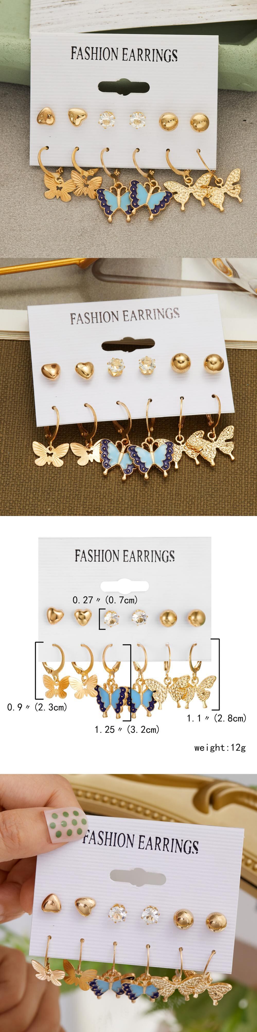 送料無料 バタフライイヤリングセット女性メタルレジンハートサークル幾何学的ピアスイヤリングチャームジュエリー 指輪 アクセサリー AE1332221651477132861