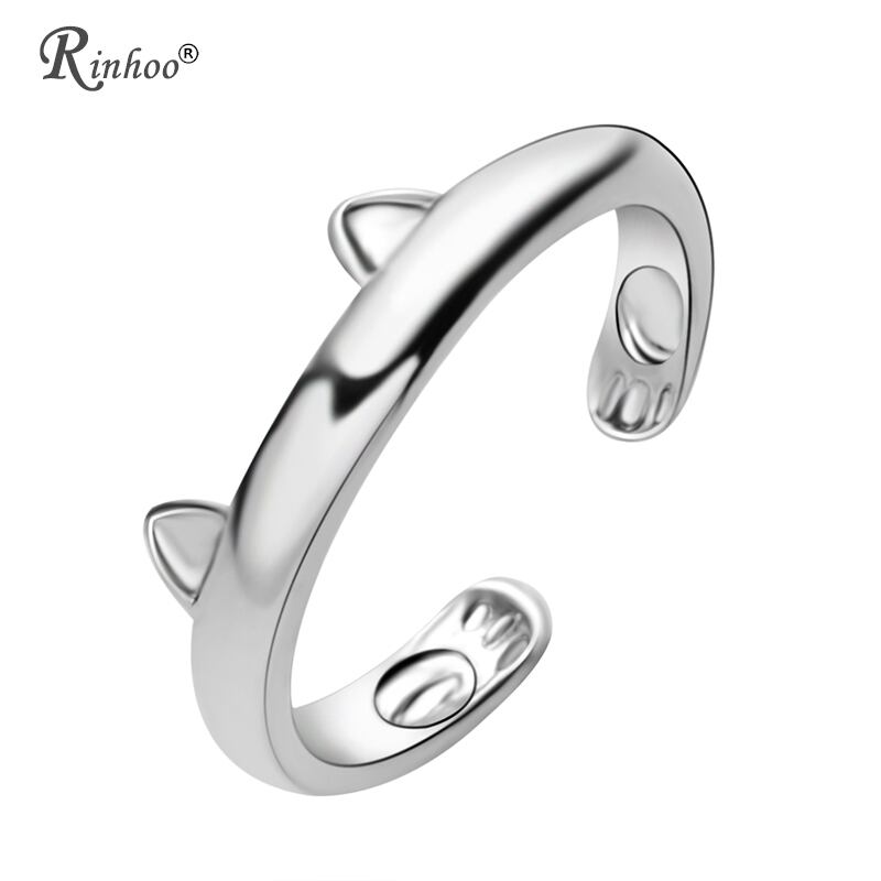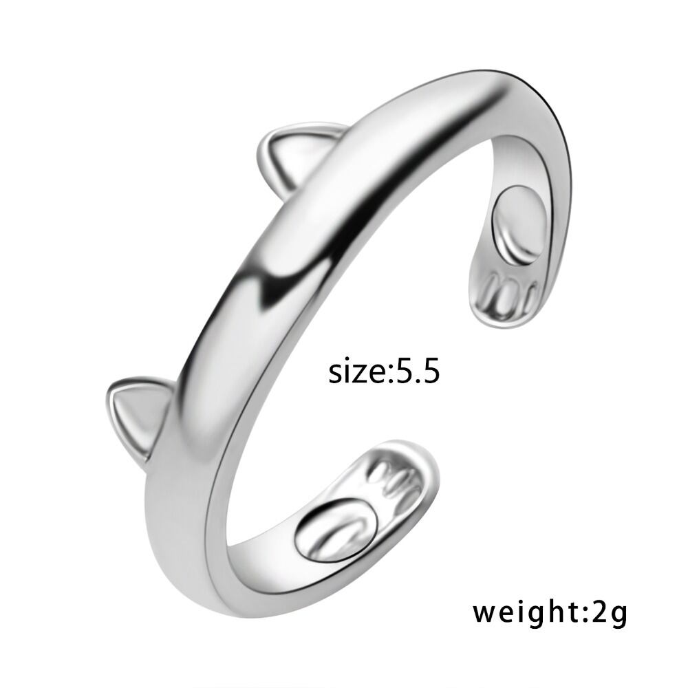 送料無料 RINHOOシルバーカラー猫のイヤリングかわいいジュエリー猫の指輪女性と女の子の結婚式の恋人のギフト調節可能なチャーム 大人ガーリー スウィート キュート カジュアル アジャスタブル 銀 アクセサリー AE1332221658563807974