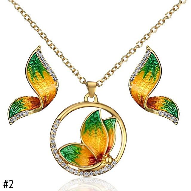 送料無料 ゴールドカラージュエリーセットリーフホローアウトバタフライネックレスとフラワーイヤリングウェディングドレス レース 指輪 フラワーデザイン アクセサリー AE1332221648300622164