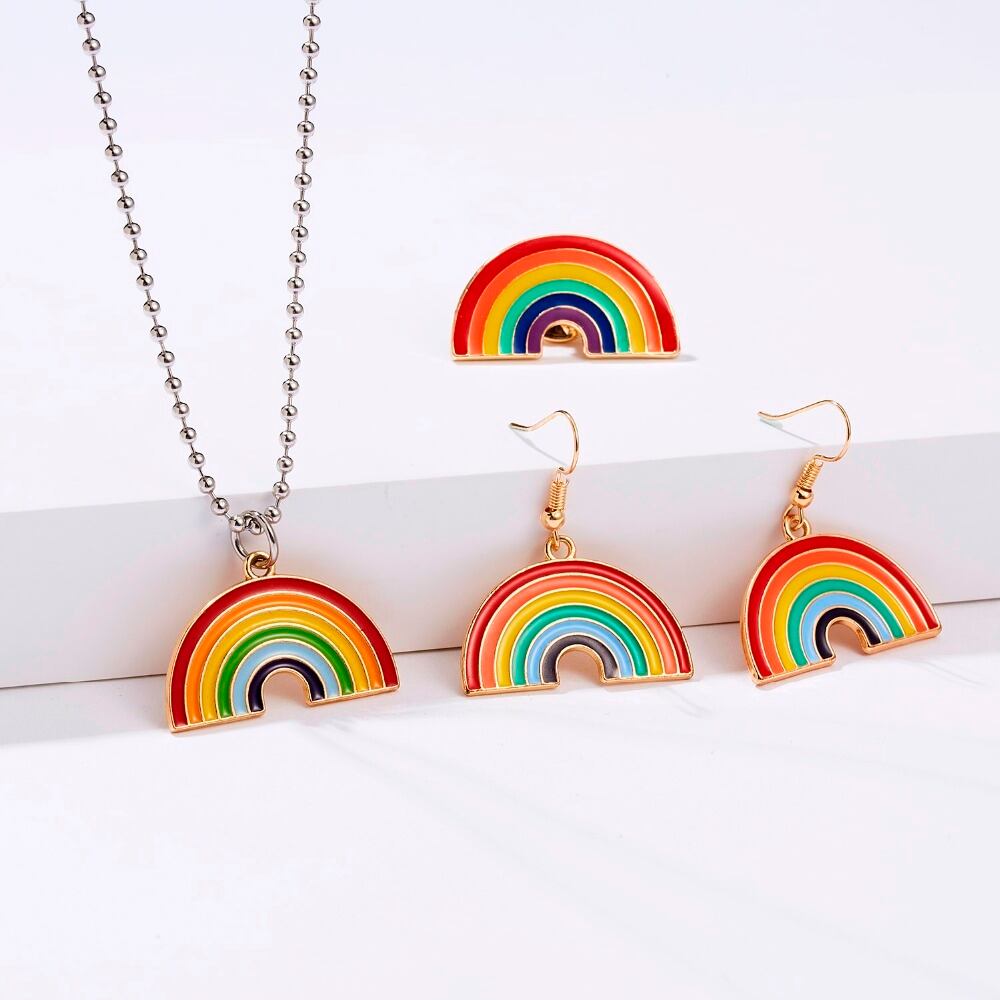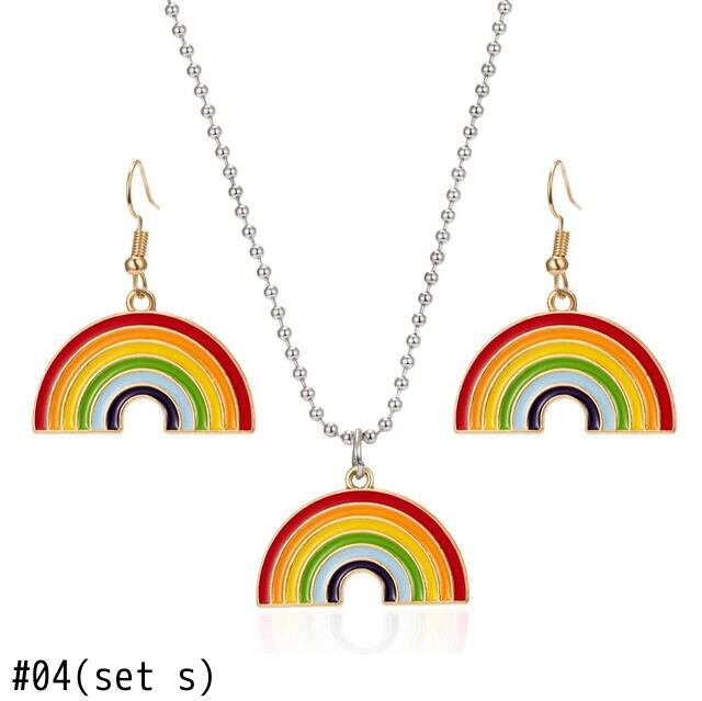 送料無料 Rinhoo漫画レインボージュエリーセットエナメル合金イヤリングロングチェーンネックレスセット女性キッズバースデーギフトアクセサリー レース 指輪 アクセサリー AE1332221691525242652