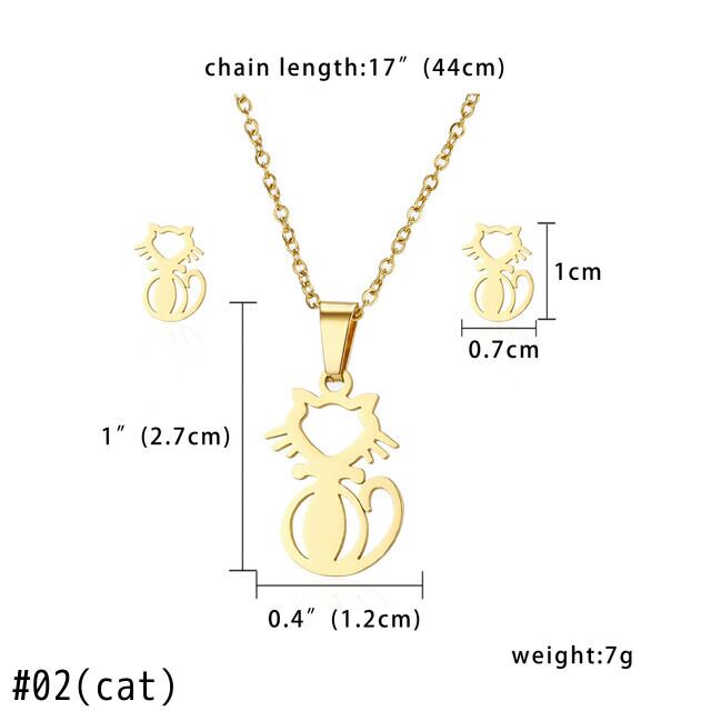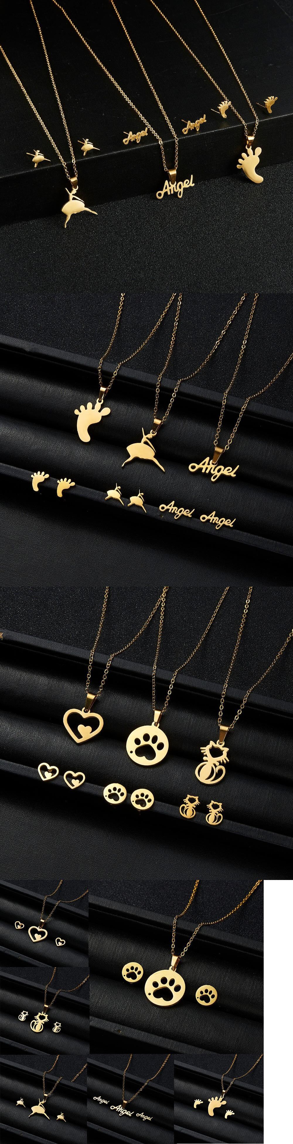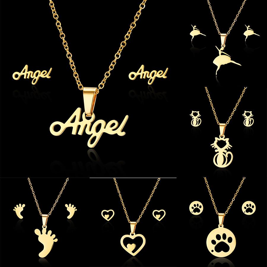 送料無料 2021ジュエリーギフトダンシングガールハートキャットポーエンジェルステンレススチールペンダントネックレスイヤリング女性ジュエリーセット レース 指輪 アクセサリー AE1332221613782279178