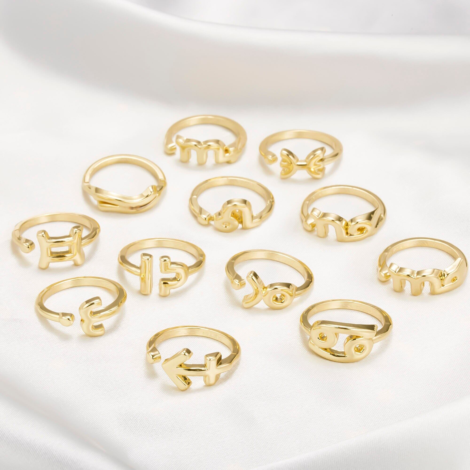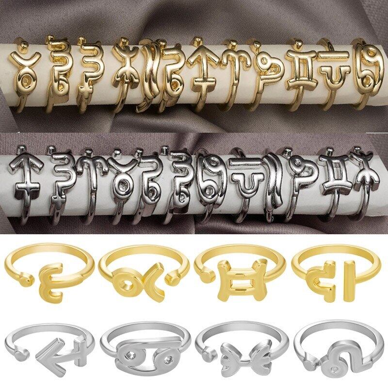 送料無料 シンプルな星座12の星座金属調節可能なオープニングリング女性の魅力誕生日パーティージュエリーギフト牡羊座レオ アジャスタブル 指輪 アクセサリー AE1332221639889818781