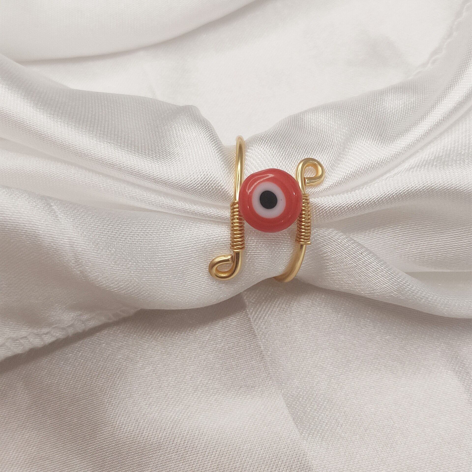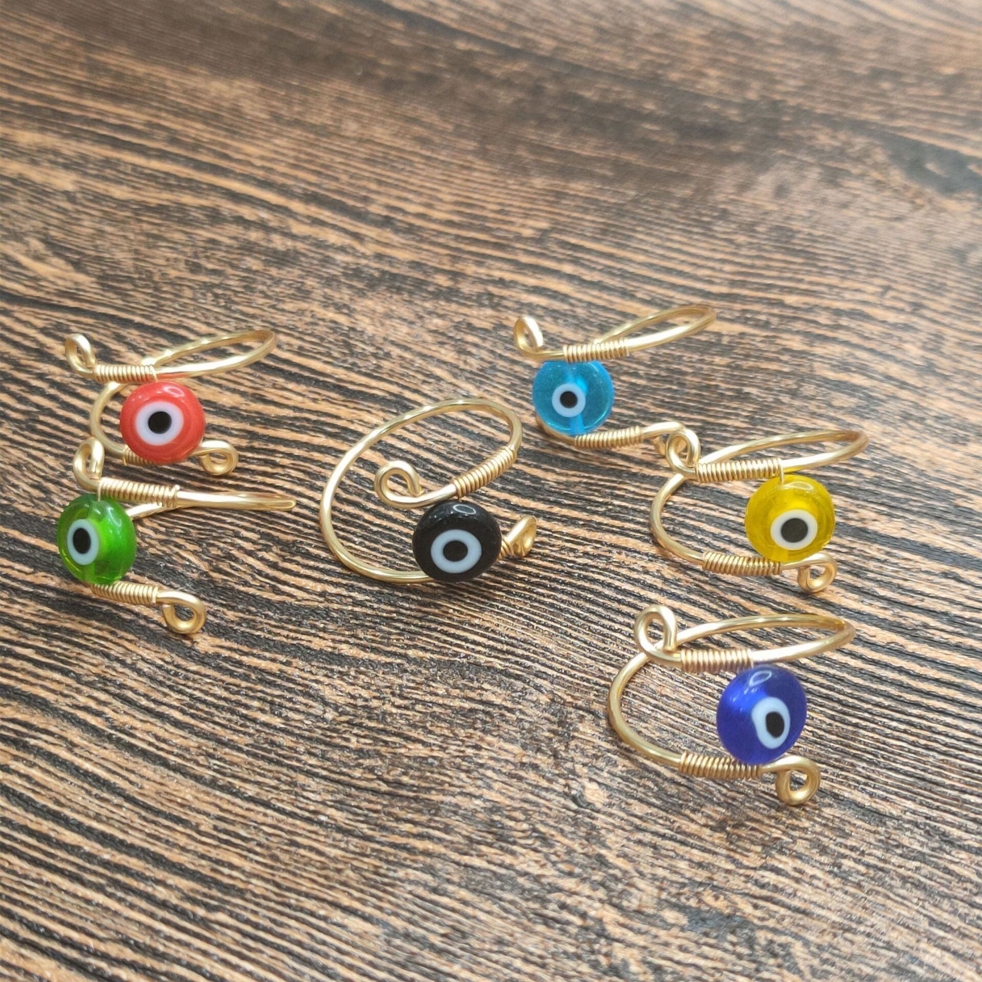 送料無料 回転可能な邪眼ビーズリング女性男性ゴールドカラー調整可能なオープンスピナースパイラルリングアンチストレスジュエリーギフト アジャスタブル 指輪 アクセサリー AE133222164603698282