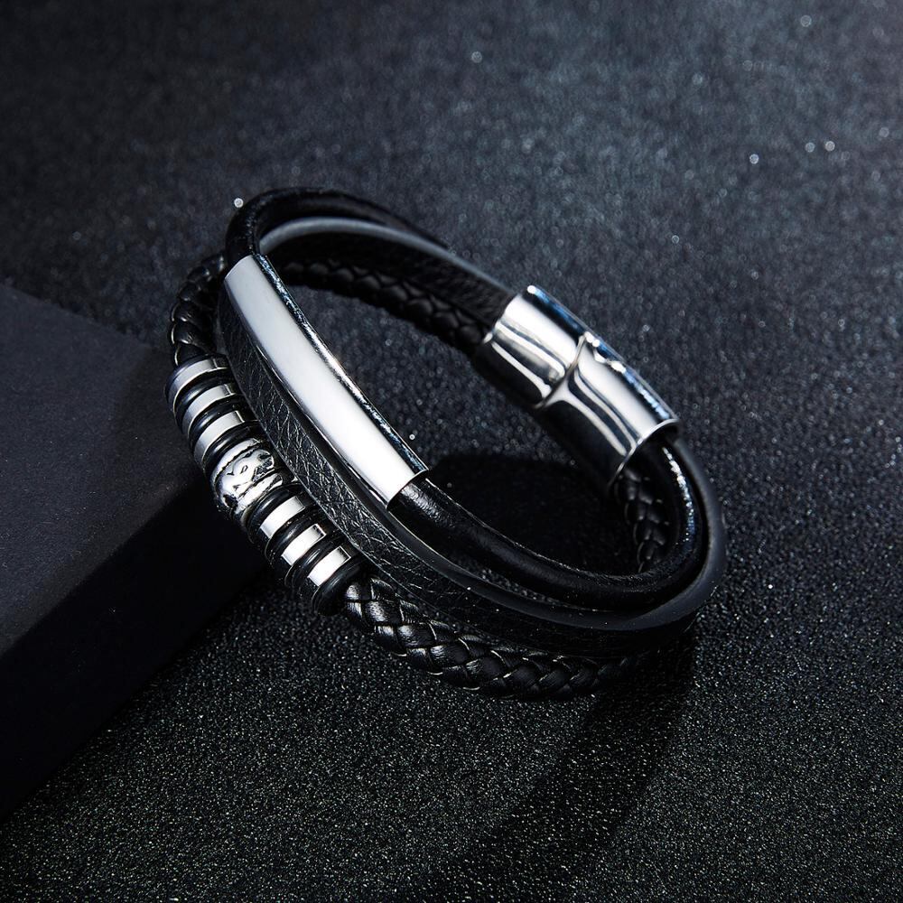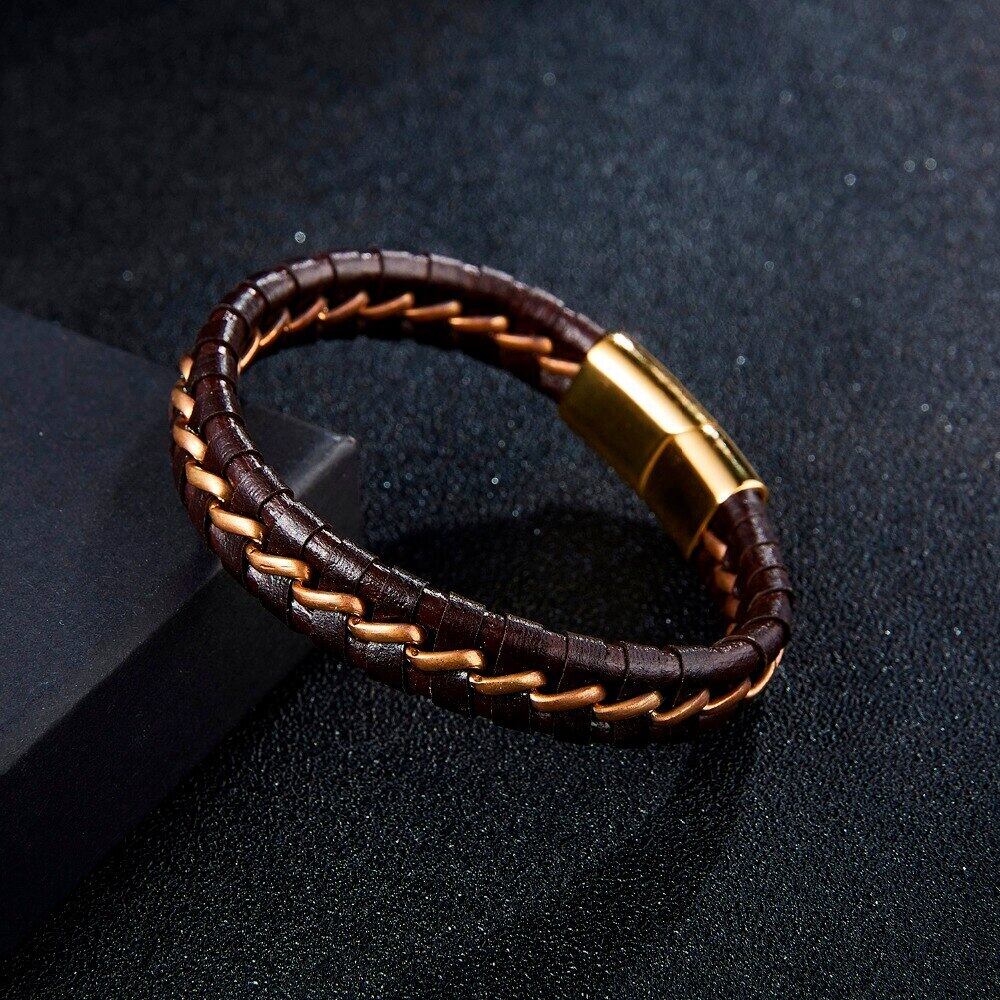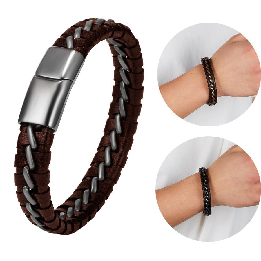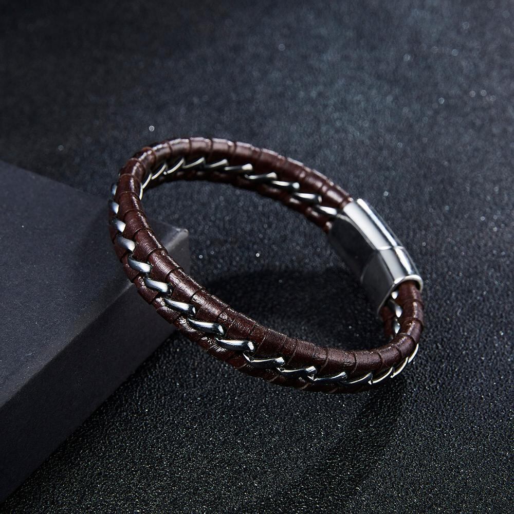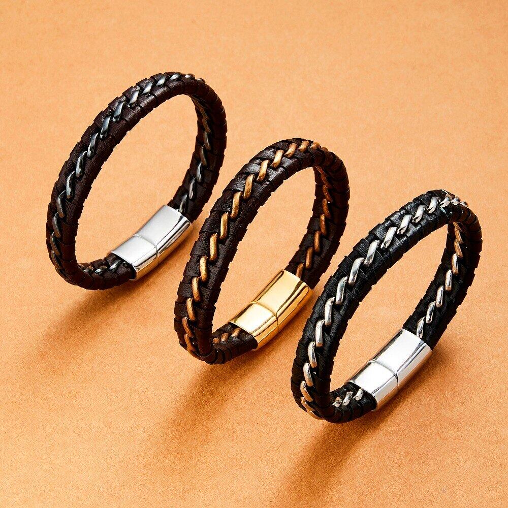 送料無料 RINHOOメンズジュエリーパンクブラックブラウンブレイドレザーブレスレットメンズアロイマグネティッククラスプオスバングルギフト22cm アクセサリー AE1332221629682413848