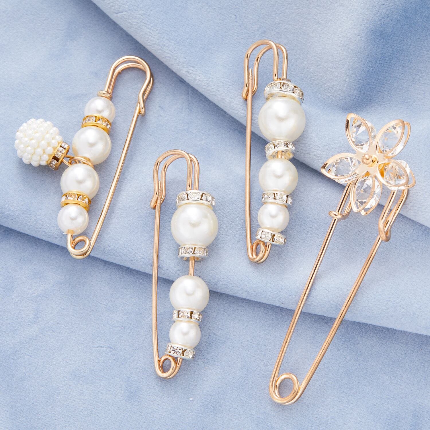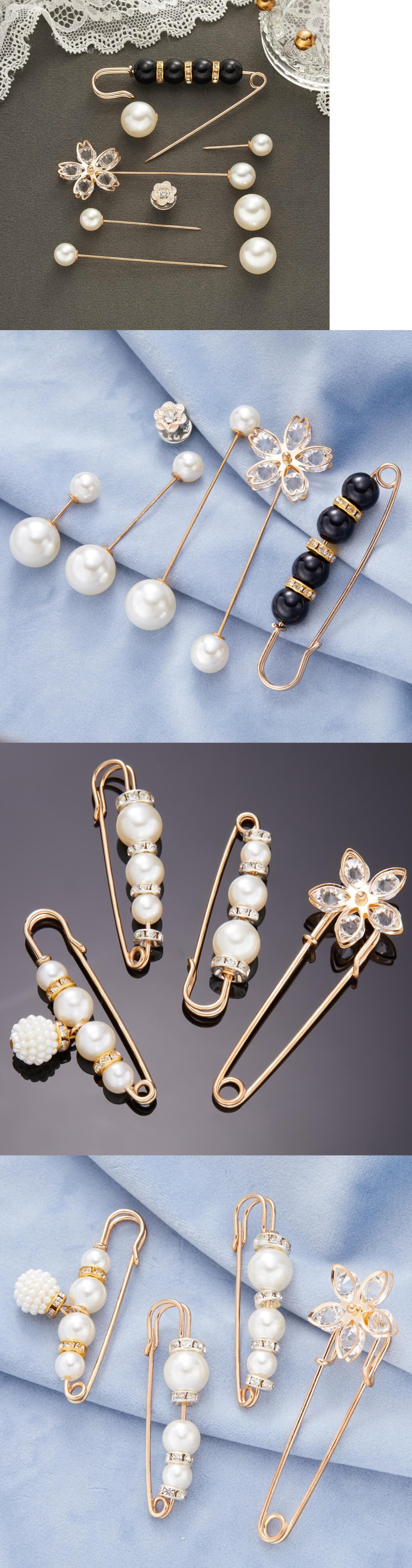 送料無料 6Pcs 4Pcs /SetImitataionパールビーズラインストーンバタフライフラワーブローチピンレディースバックルトレンディなアクセサリー 真珠 フラワーデザイン アクセサリー AE1332221656221351378