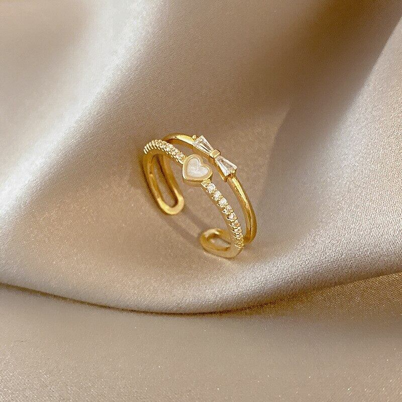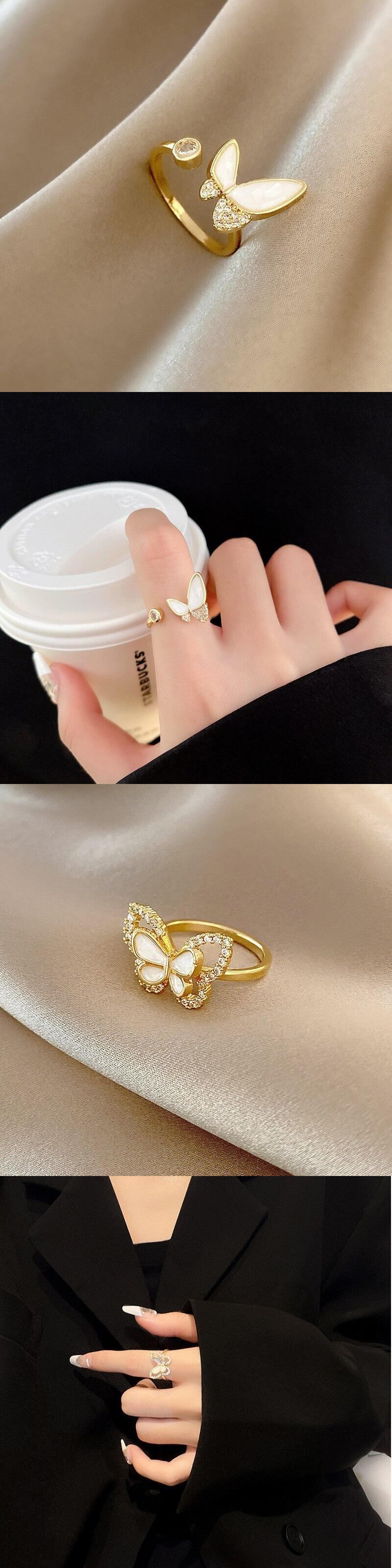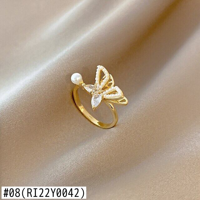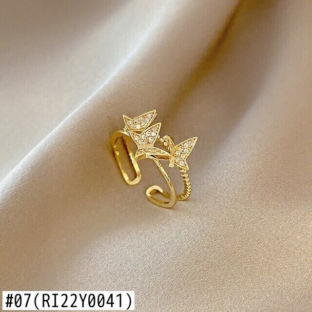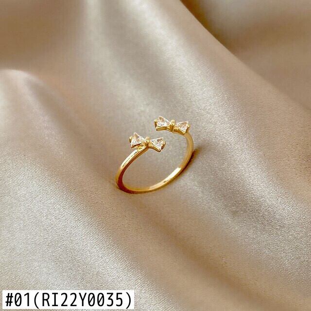 送料無料 ジルコンバタフライボウノットリングレディースゴールドカッパーオープニングアジャスタブルリングチャームジュエリー リボン 指輪 アクセサリー AE1332221683409147634