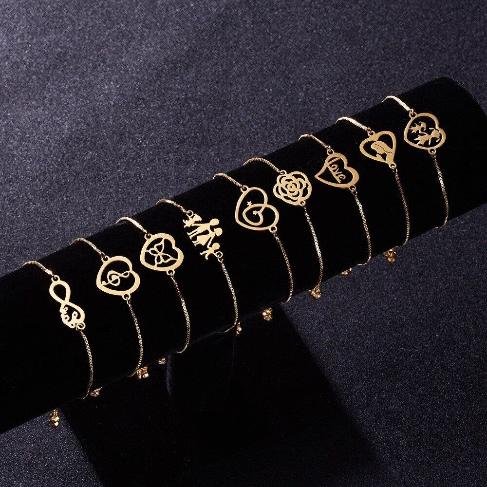 送料無料 RINHOOゴールドカラーステンレススチールブレスレット女性バングルチェーンジュエリーウェディングブライドハートローズファミリーマザーブレスレットギフト アクセサリー AE1332221695153830895
