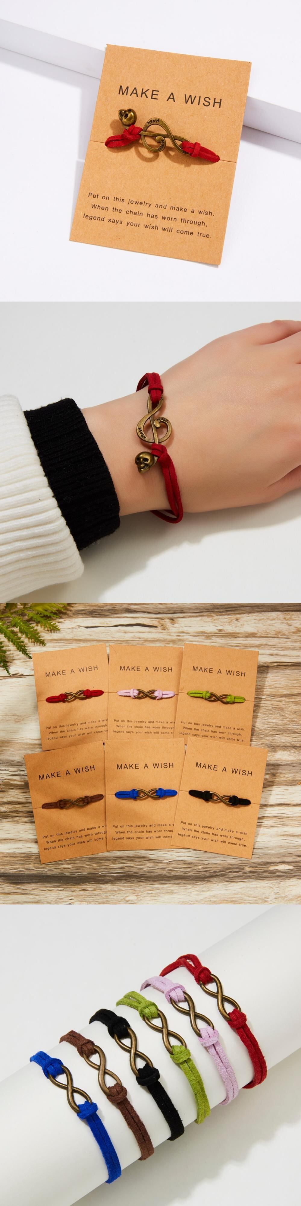 送料無料 手作りのヴィンテージラブインフィニット「8」ノートスカルペンダントウィービングロープチェーンブレスレットメイクアウィッシュボール紙 ビンテージ アクセサリー AE1332221621310132468