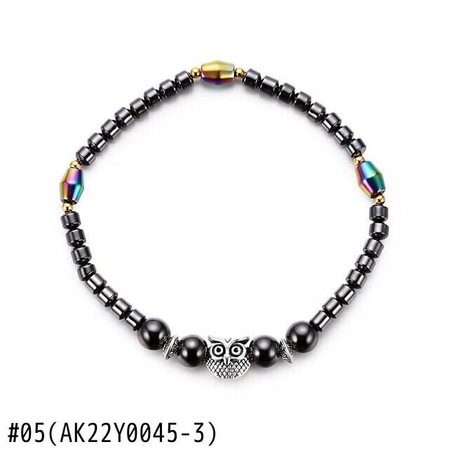 送料無料 手作りヨガフクロウマグネット磁気ビーズアンクレット女性男性シンプルブラックストーン弾性アンクレットチャームジュエリー エラスティック 伸縮 アクセサリー AE1332221632407431844