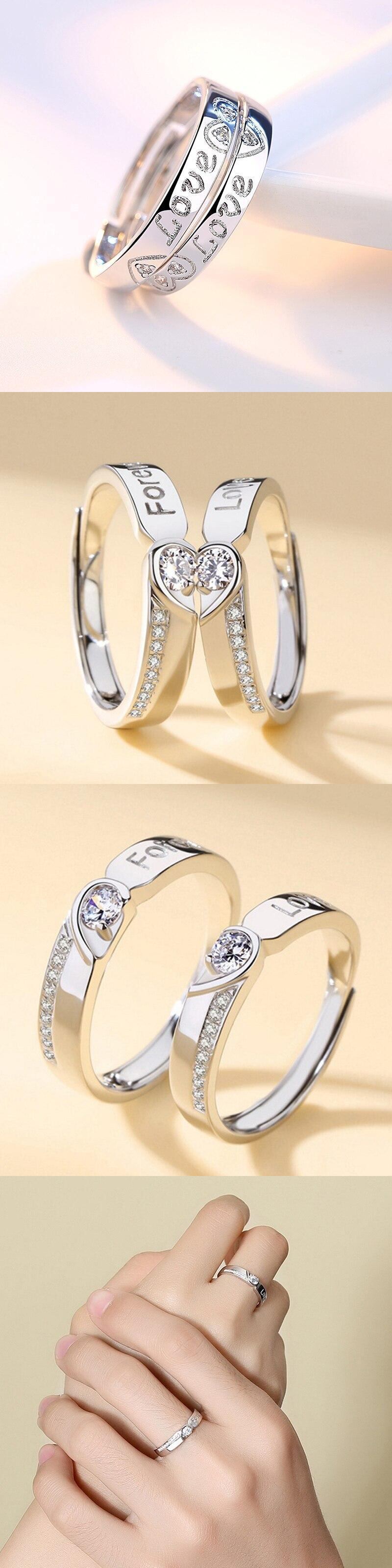 送料無料 エバーラブカップルリングラバーハートジルコン銅オープニング調節可能なフィンガーリングアニバーサリーエンゲージメントギフト アジャスタブル 指輪 アクセサリー AE1332221646054506857