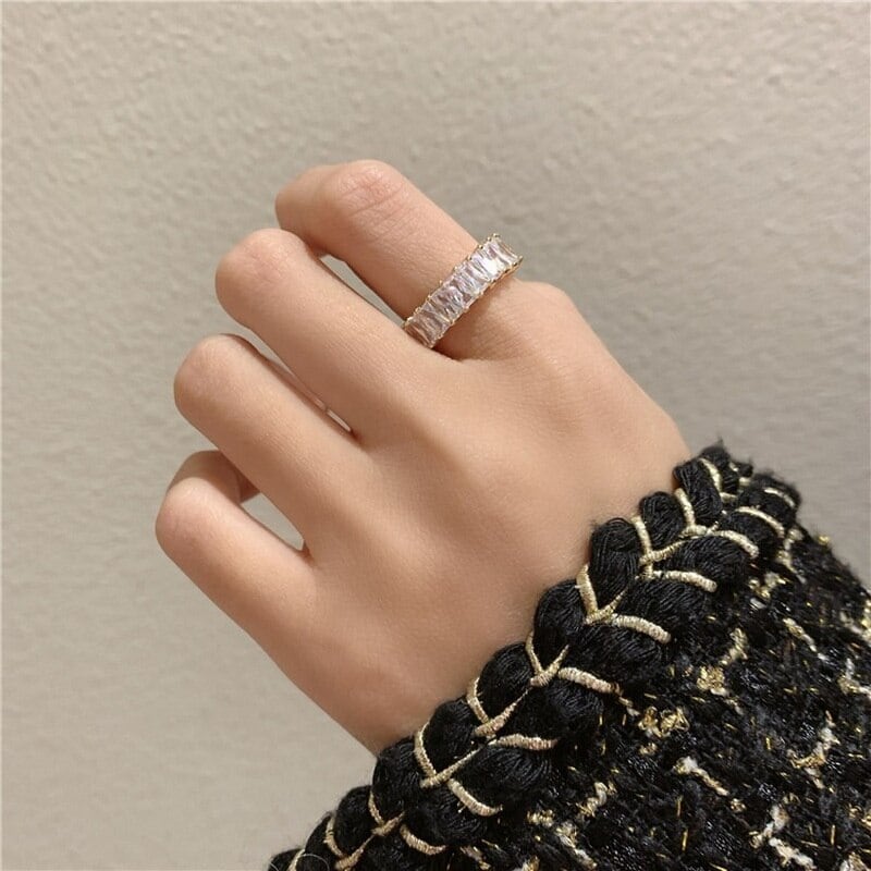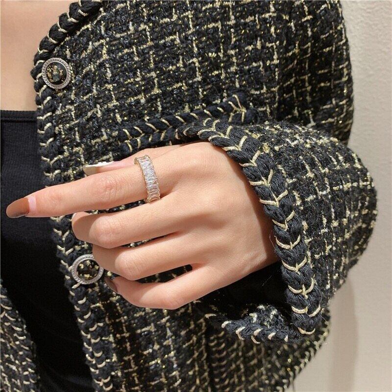 送料無料 シンプルな長方形のジルコンリング女性男性ジュエリースタークロスホロウオープンリング結婚指輪2022 アクセサリー AE1332221684024297509