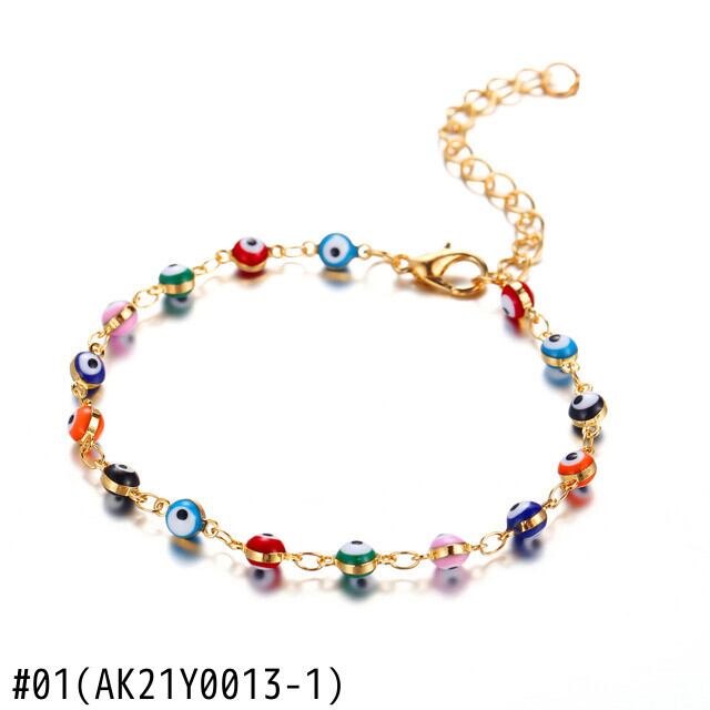 送料無料 女性の2層ラウンドアンクレットシンプルなカラフルな目ビーズアンクレットサマービーチ裸足ブレスレットジュエリー 夏物 アクセサリー AE1332221653121726046