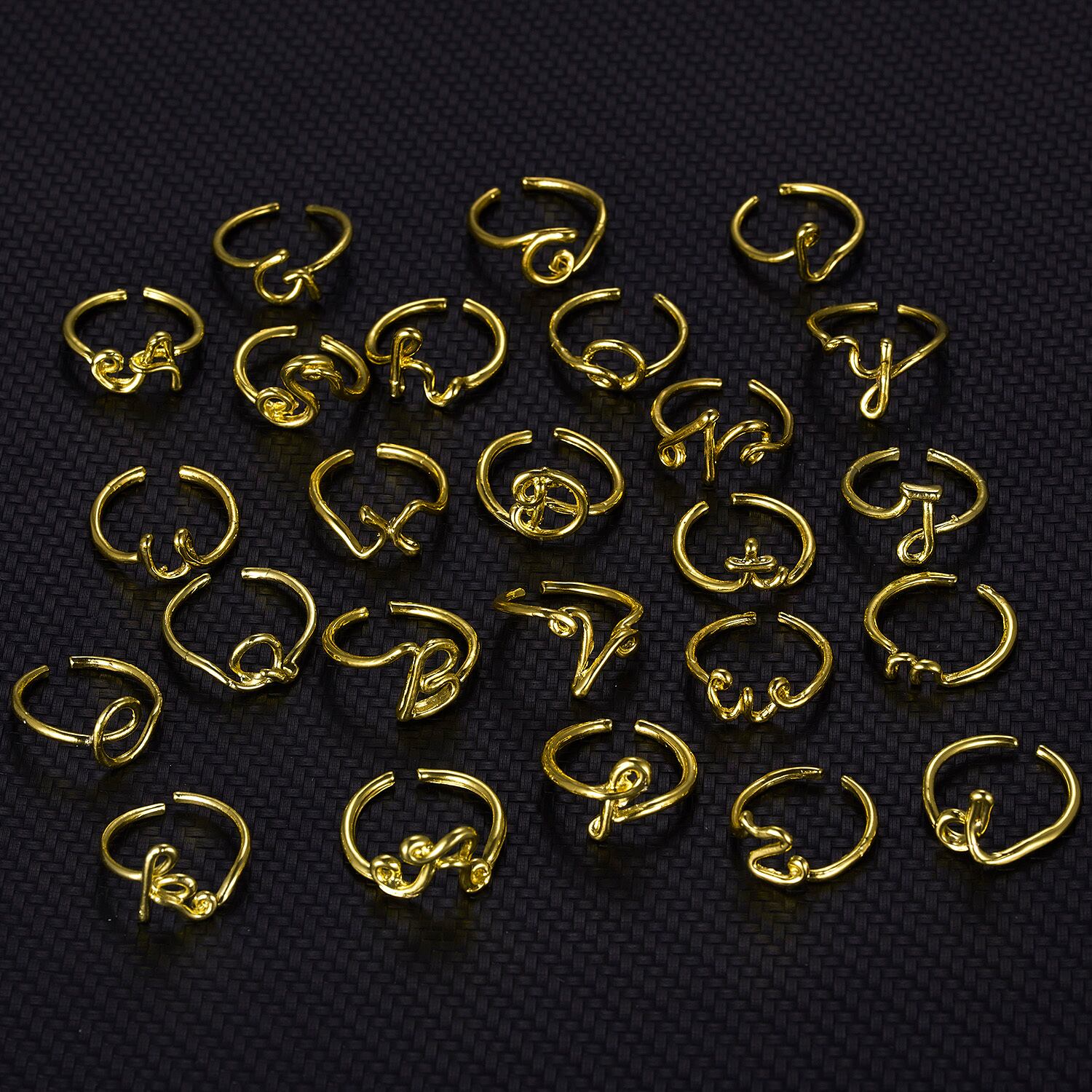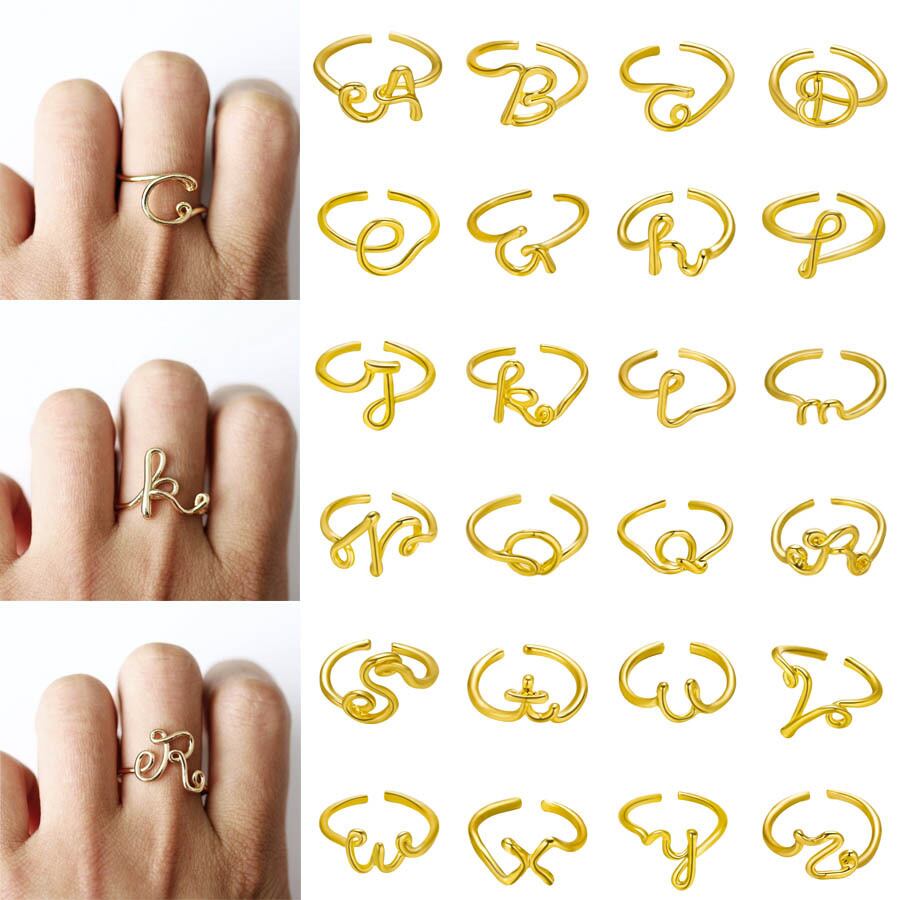 送料無料 ゴールドカラー合金A-Z26文字イニシャル名アルファベットリングクリエイティブオープニングフィンガーリング女性男性ジュエリーギフト 指輪 アクセサリー AE1332221693114052240