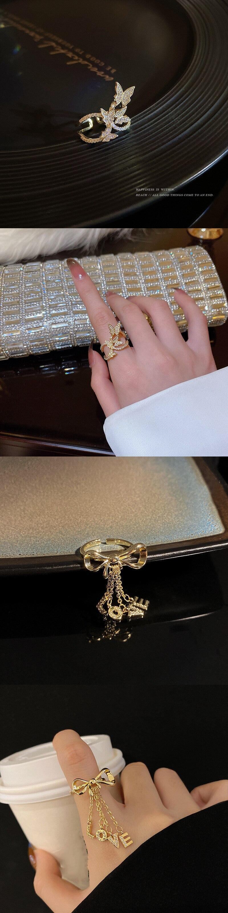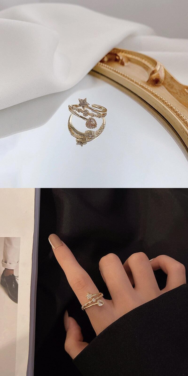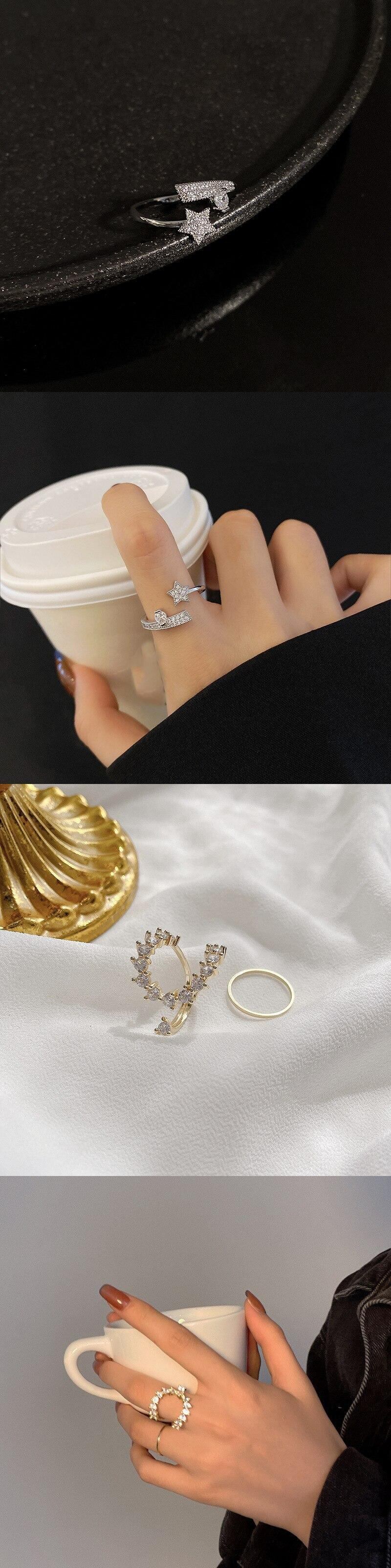 送料無料 スタームーンジルコンリング女性シンプルな幾何学的な開口部調整可能なバタフライリングチャームジュエリー アジャスタブル 指輪 アクセサリー AE1332221626235740548