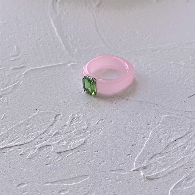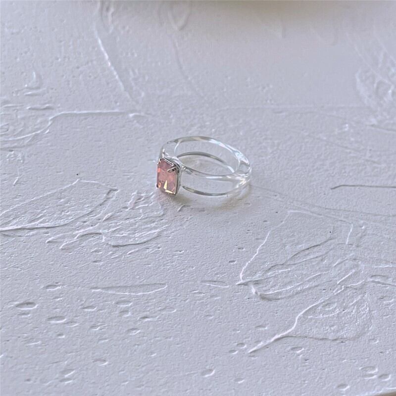 送料無料 レトロなカラフルな幾何学的な長方形透明なアクリルラージジルコンリング女性気質指輪ジュエリー アクセサリー AE1332221696106902309