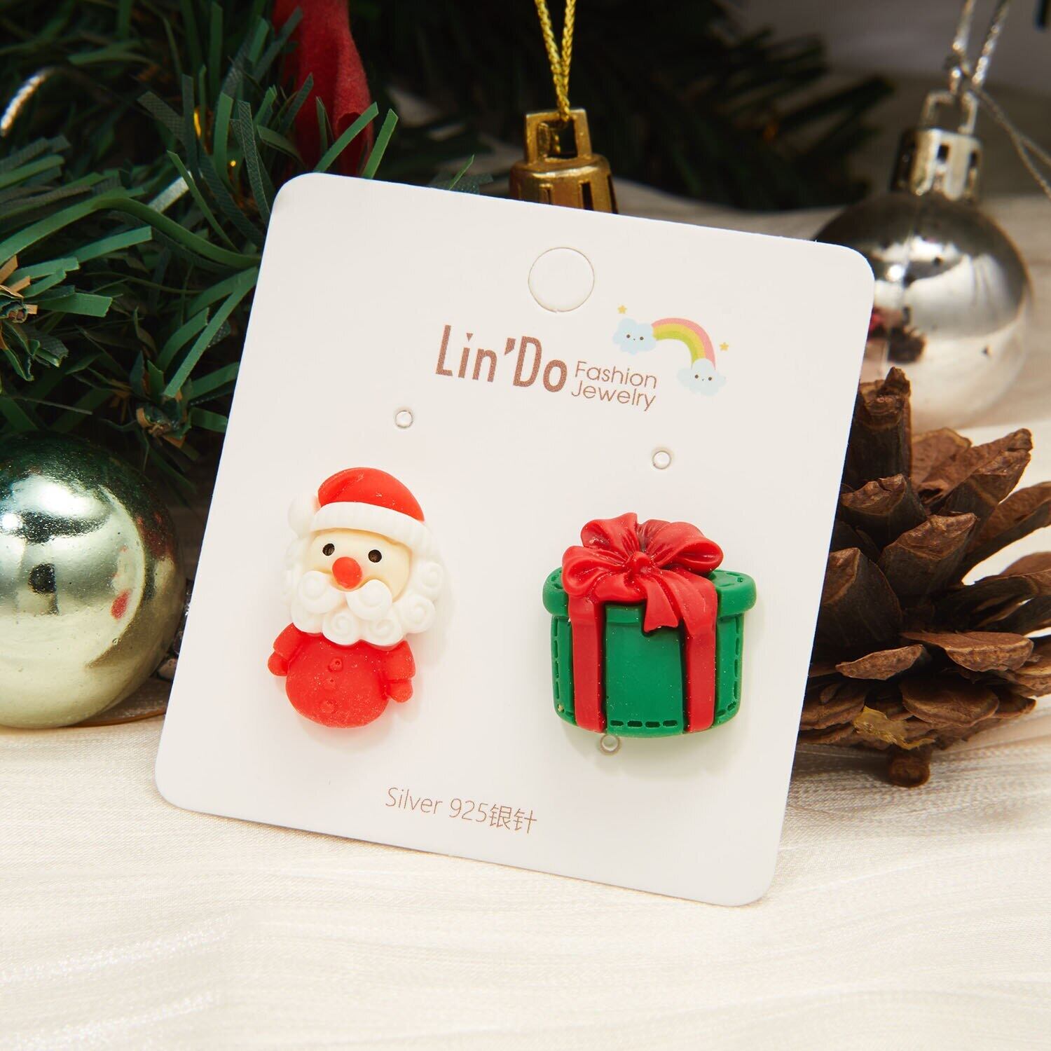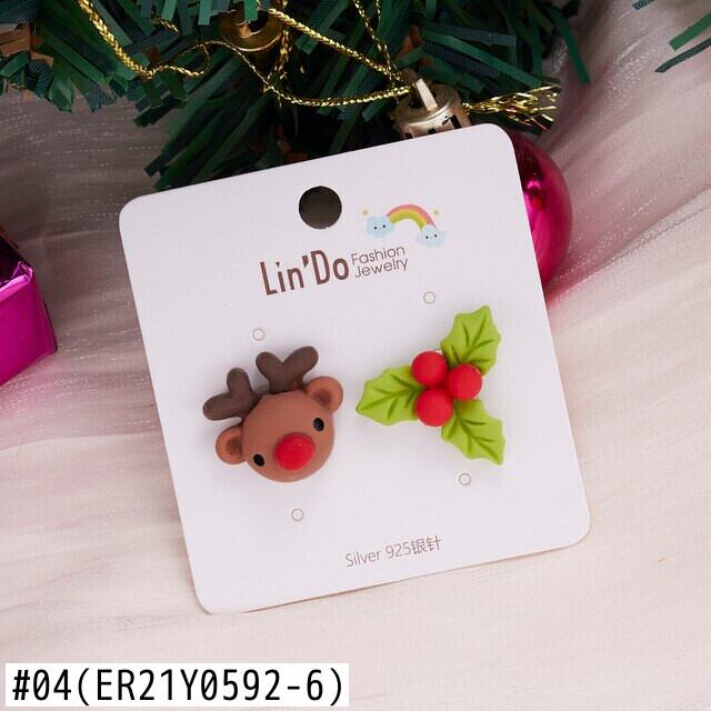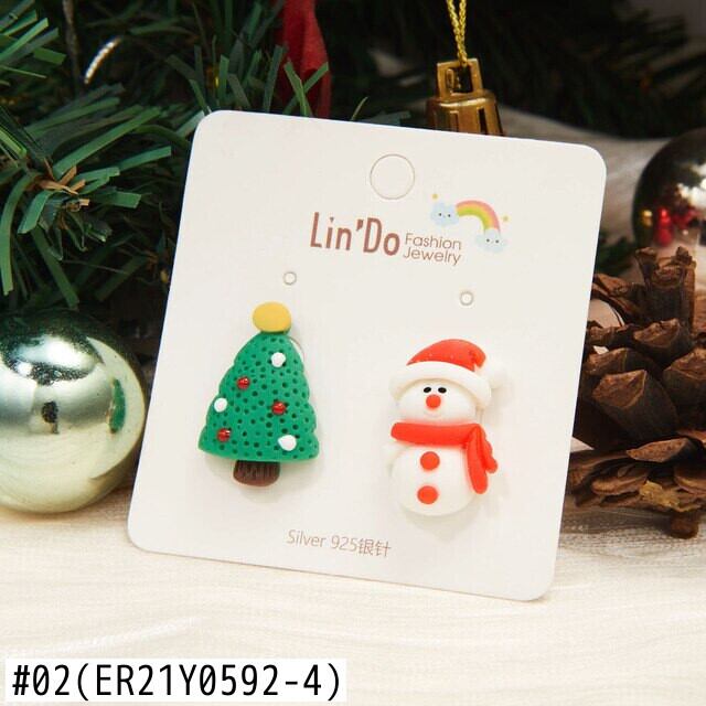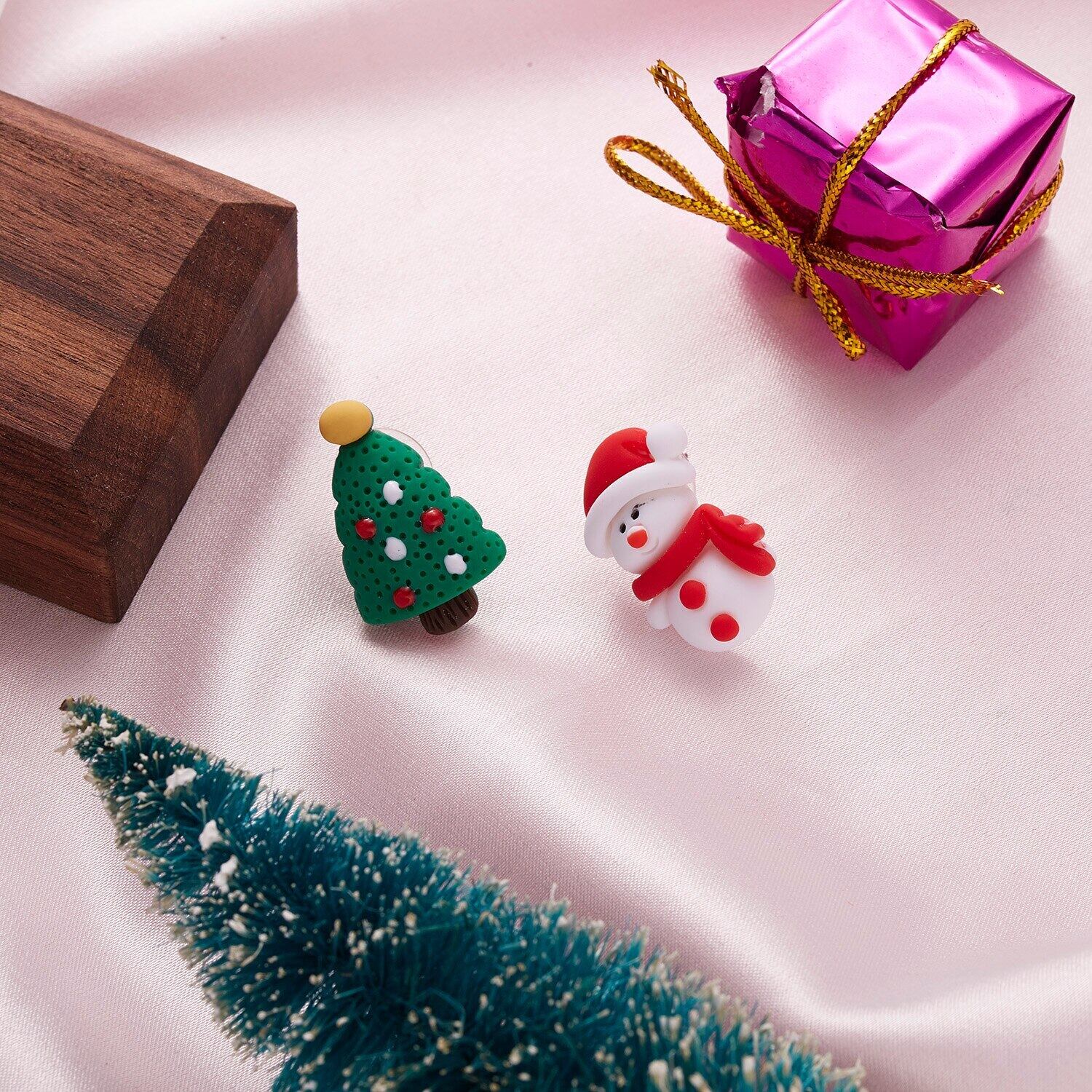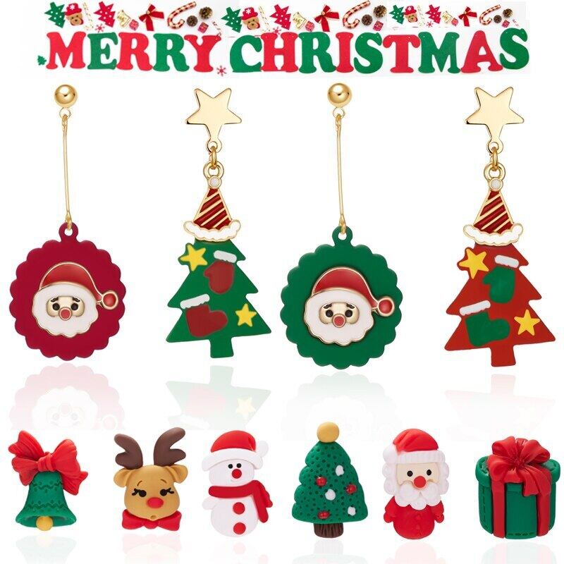 送料無料 漫画サンタクロース雪だるまエルク非対称ピアススタッドピアス粘土クリスマスイヤリング女性クリスマスジュエリー アクセサリー AE1332221625722829463