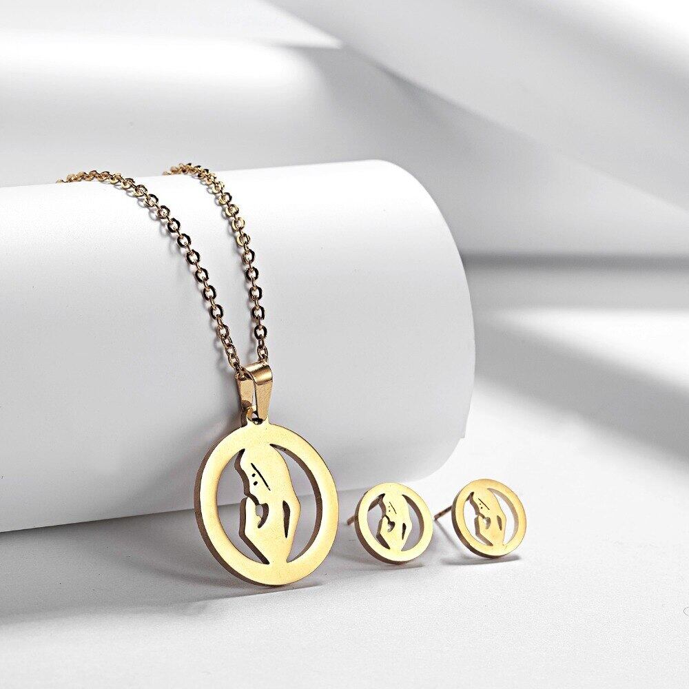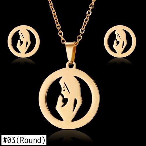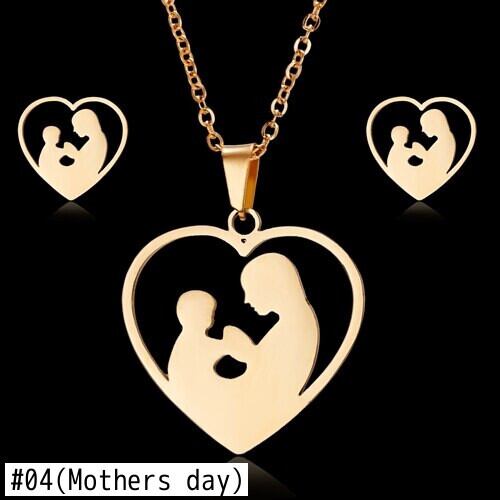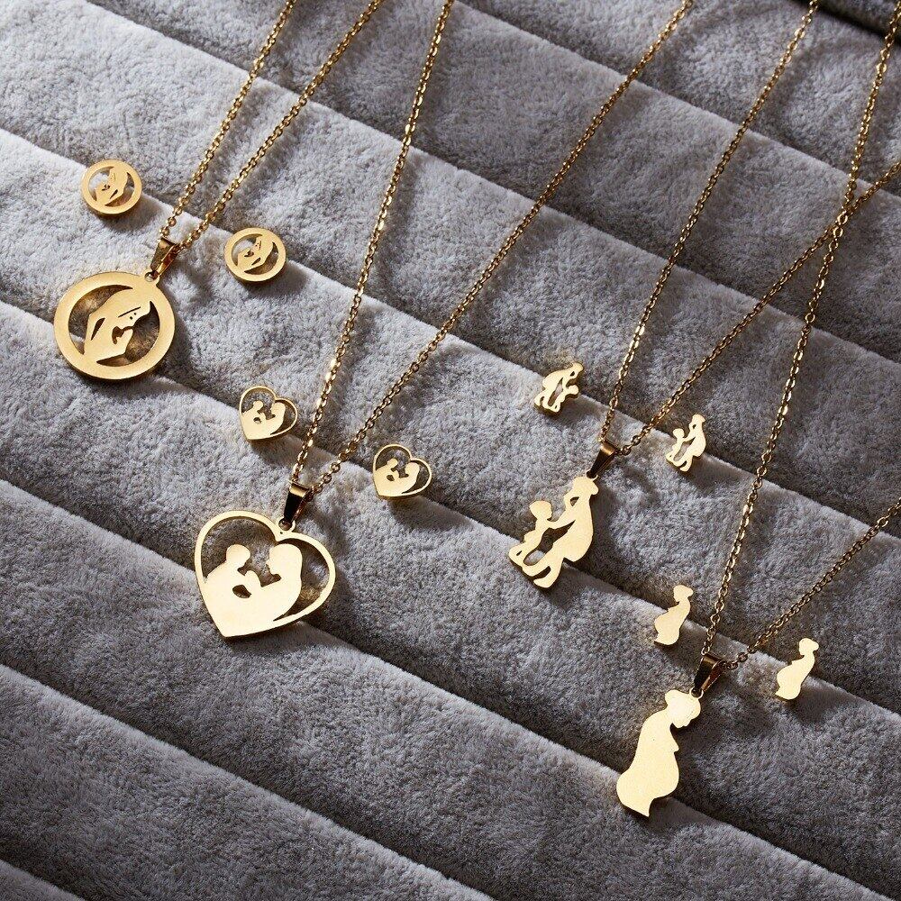 送料無料 RINHOO Mom LoveBabyKidsゴールドカラーステンレススチールセットレディースネックレスイヤリングジュエリーセット母の日ギフト レース キッズ 指輪 アクセサリー AE1332221671079242237