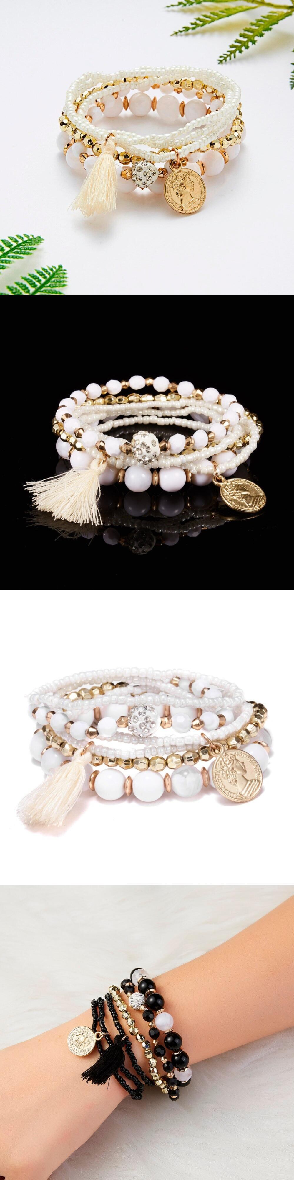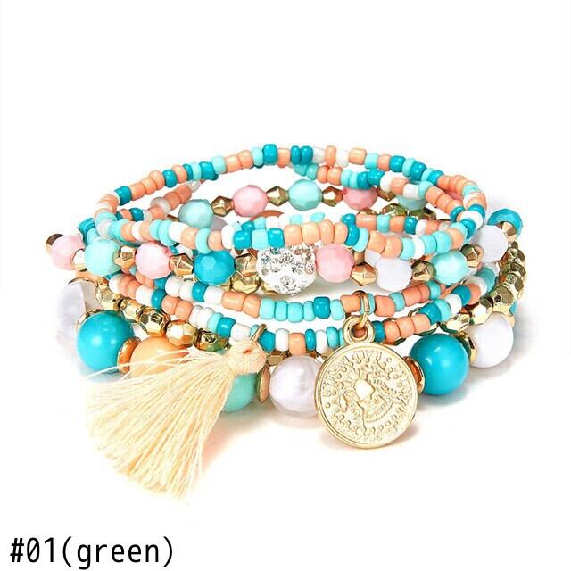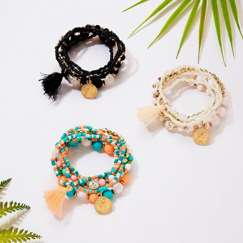 送料無料 女性ビーズブレスレット多層シードビーズコインチャームTelブレスレットセットリストバンドジュエリーパーティーギフト6個/セット マルチレイヤー アクセサリー AE1332221616776078114