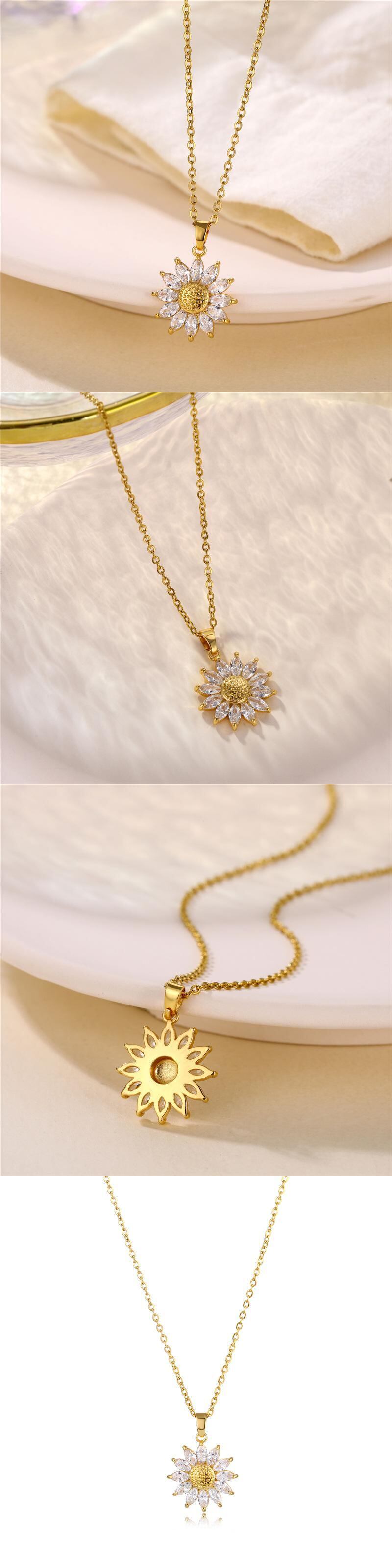 送料無料 ひまわりペンダントクラビクルネックレスレディースゴールドカラーチェーンスモールデイジーパールチェーンカラーネックレスジルコンジュエリーギフト レース 真珠 フラワーデザイン アクセサリー AE1332221647573649989