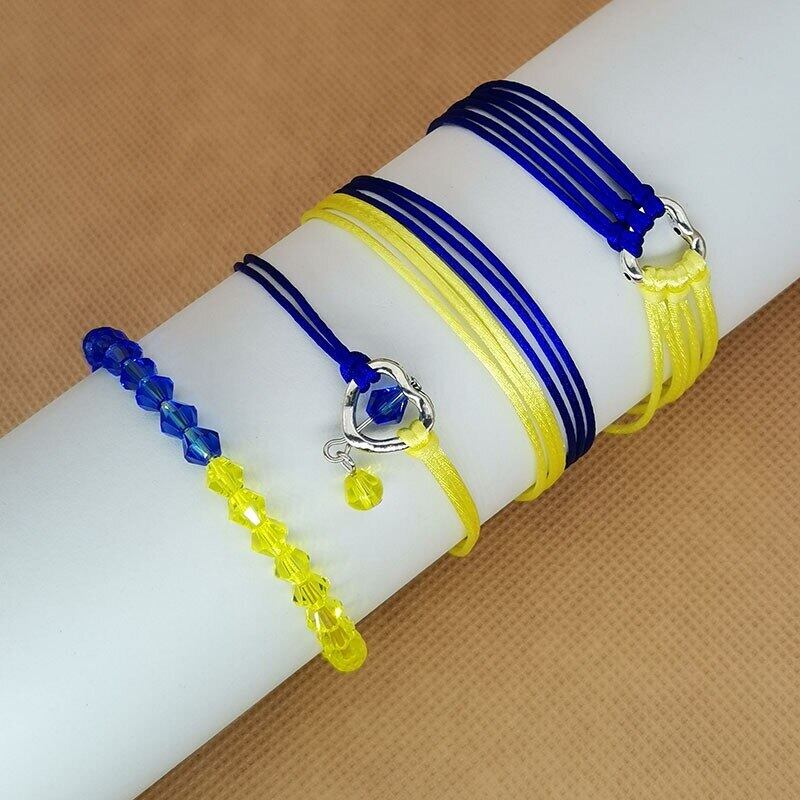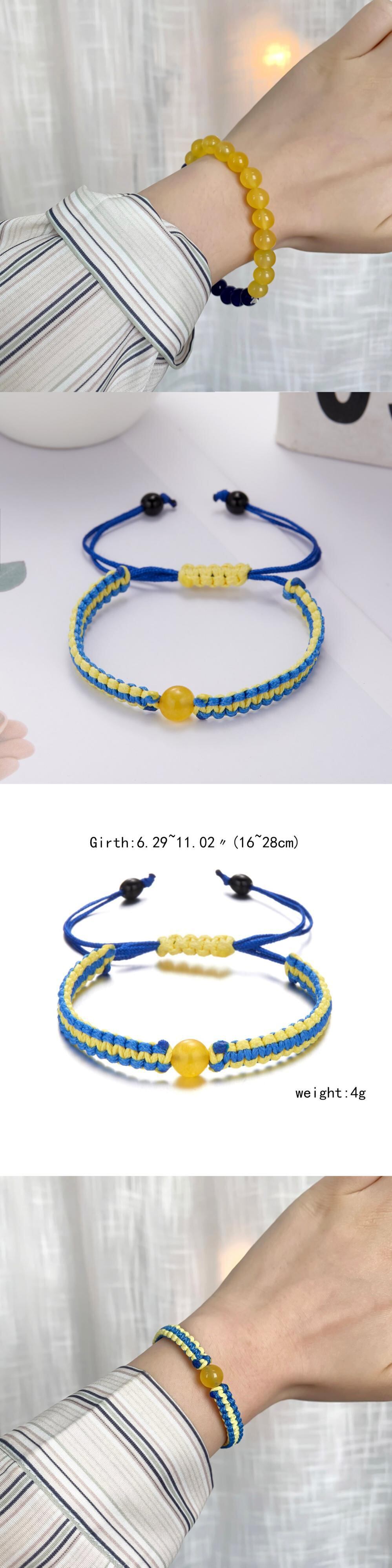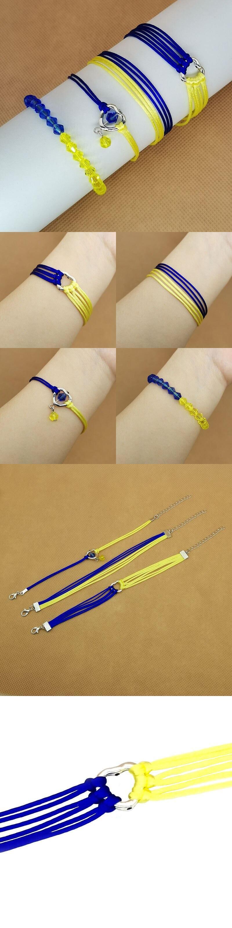 送料無料 チャームイエローブルーブレスレット女性男性ハート形旗の色手作り編みこみロープブレスレット調節可能なジュエリー アジャスタブル アクセサリー AE1332221644804711273