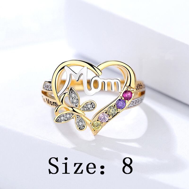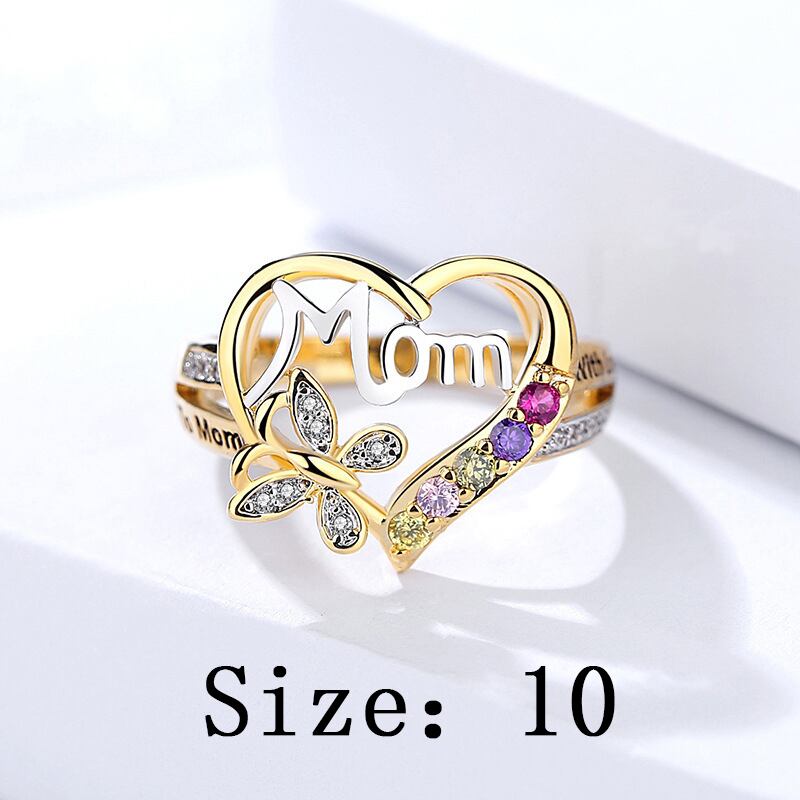 送料無料 ラブハートバタフライリングママホロウジルコンゴールドカラーリング母の日ギフト女性トレンディフィンガージュエリー 指輪 アクセサリー AE1332221657373743489