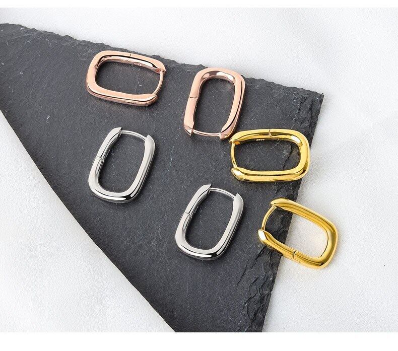 送料無料 スターリングシルバーシンプルな光沢のあるスクエアフープピアス女性の豪華なウェディングジュエリーギフト イヤリング 指輪 銀 スクウェア アクセサリー AE1008886362599101