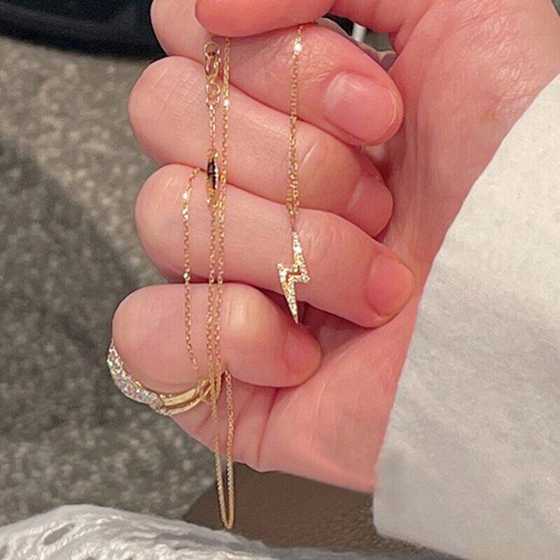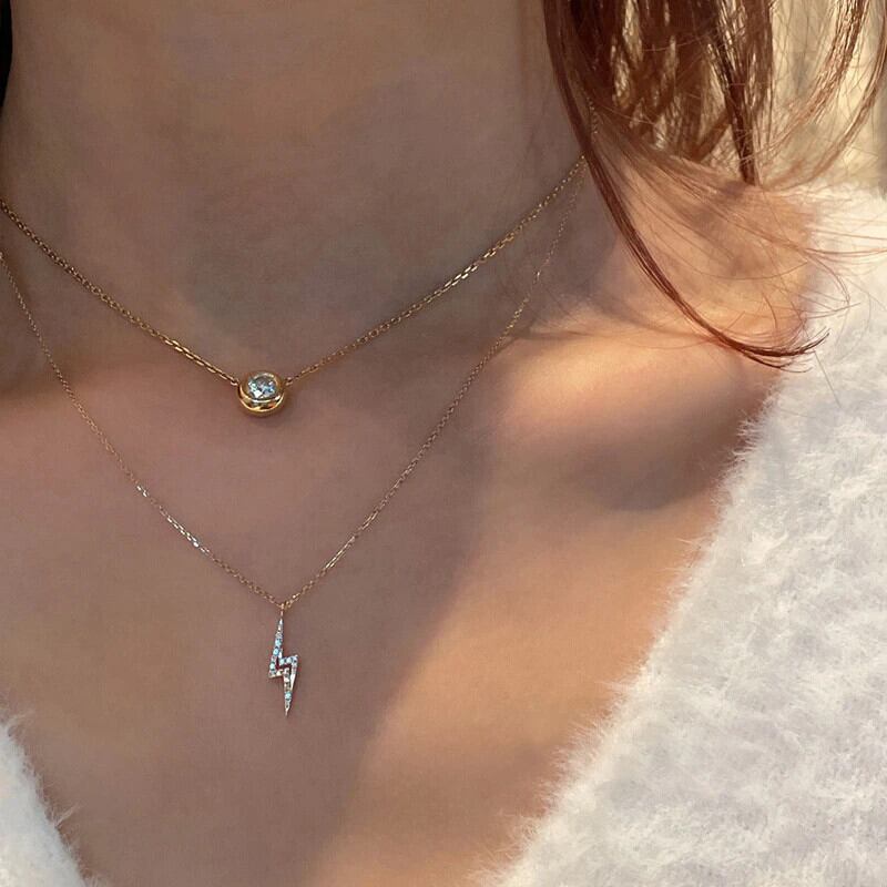 送料無料 スターリングシルバーライトニングフルダイヤモンドネックレスレディーススタイルジュエリーガールフレンドギフト レース 銀 アクセサリー AE1008838872990025